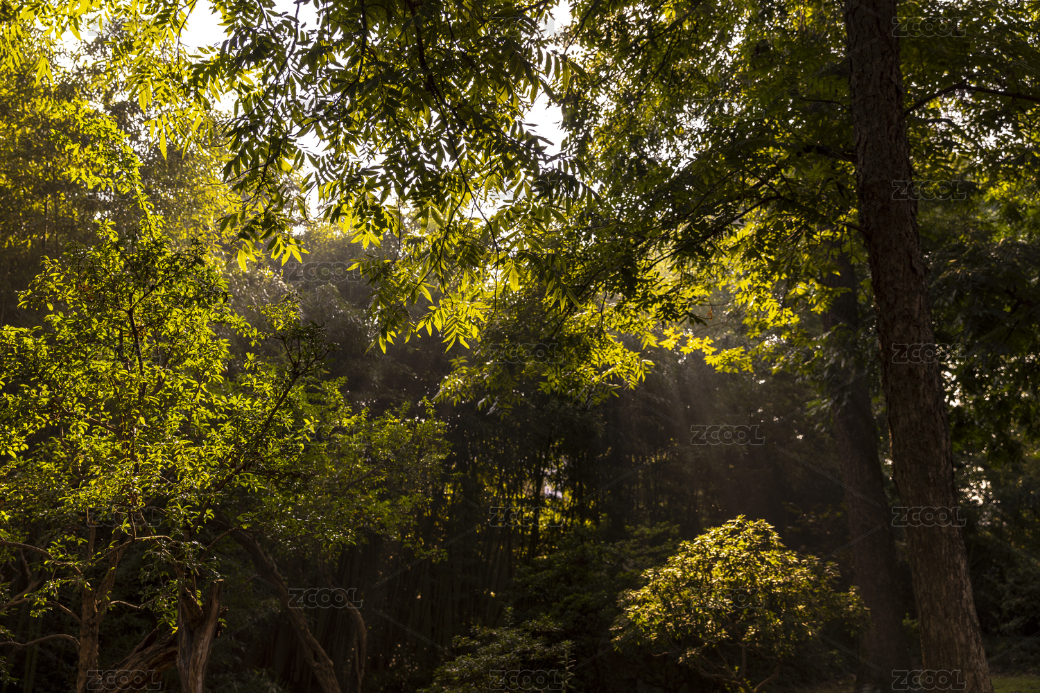 苏州园林拙政园阳光穿透树叶 唯美耶稣光