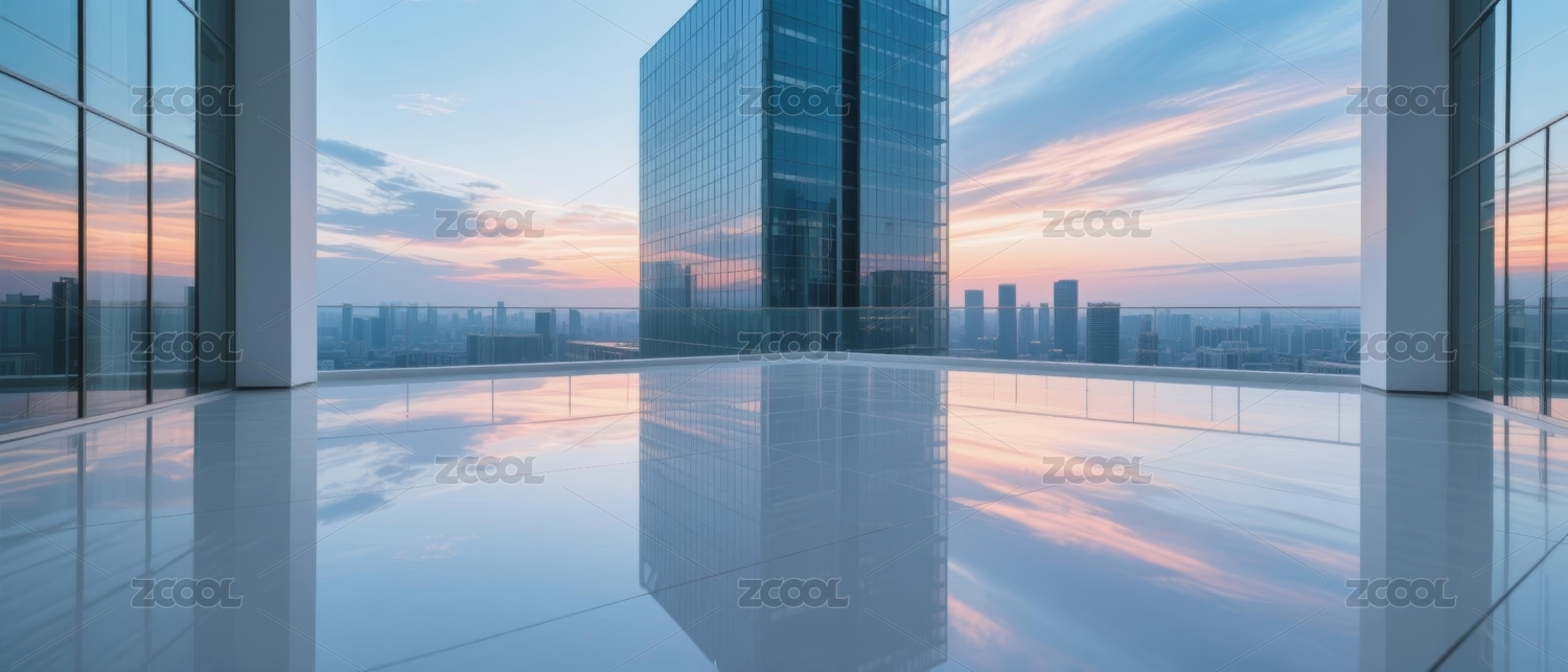 抽象插画风商业写字楼,城市天际线玻璃幕墙