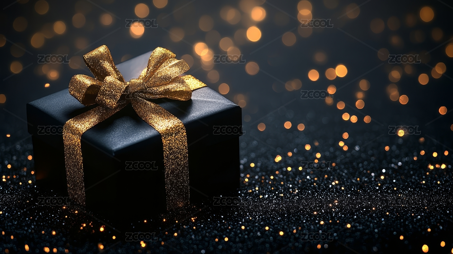 黑色礼盒与金色丝带,奢华闪耀的节日气氛