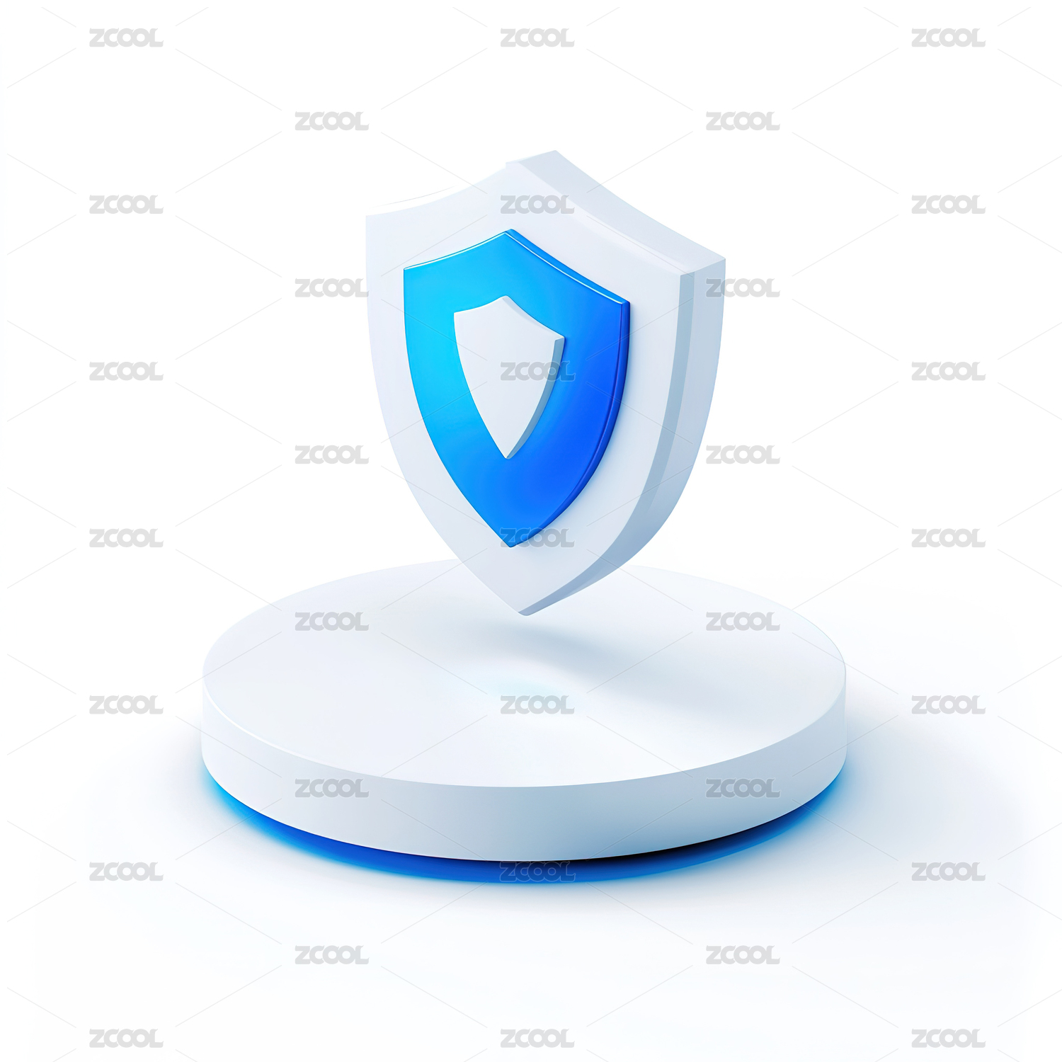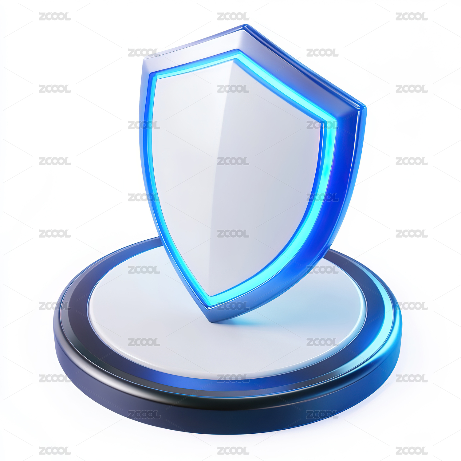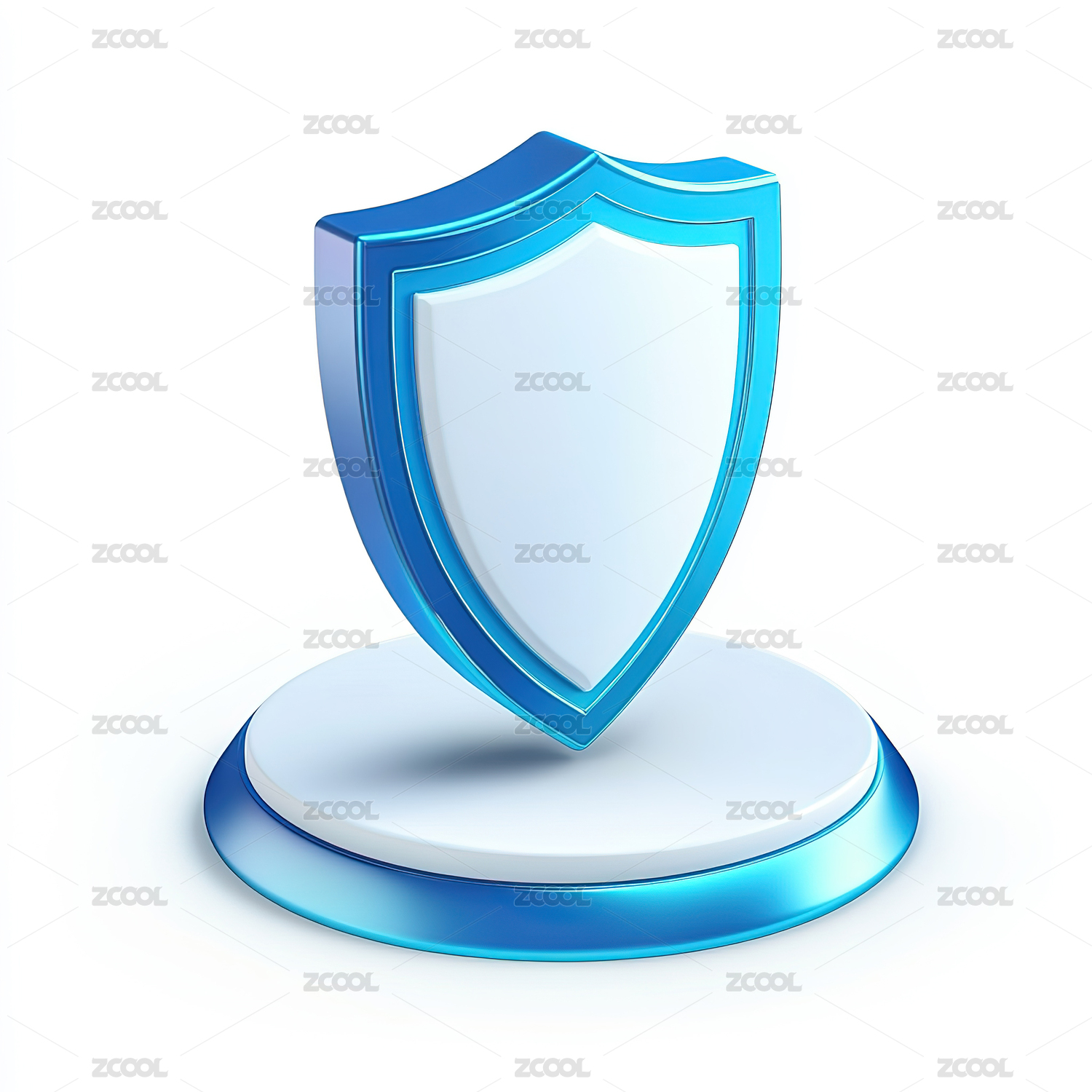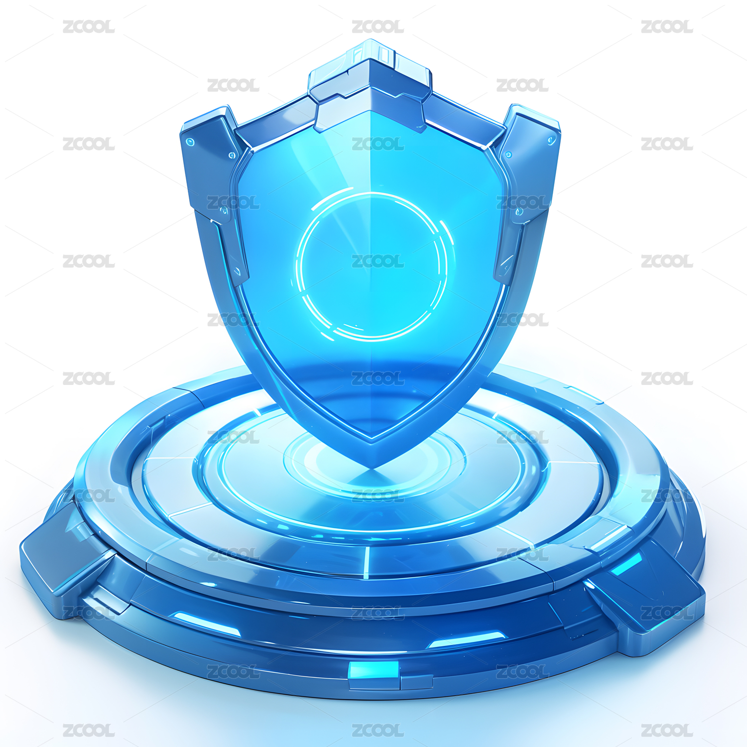 一个蓝色的护盾放在蓝色的圆形底座上面