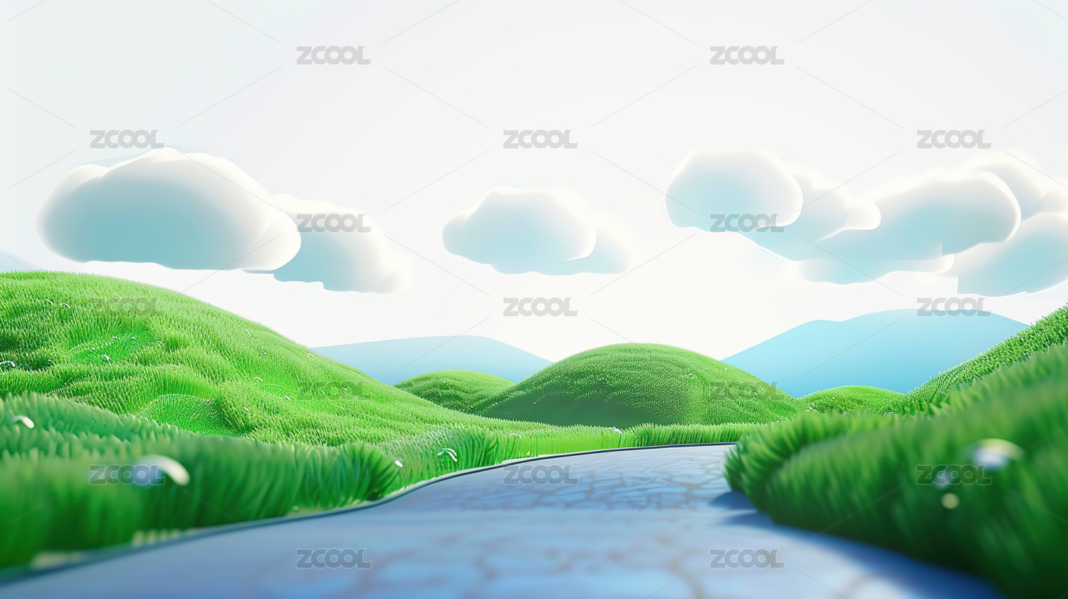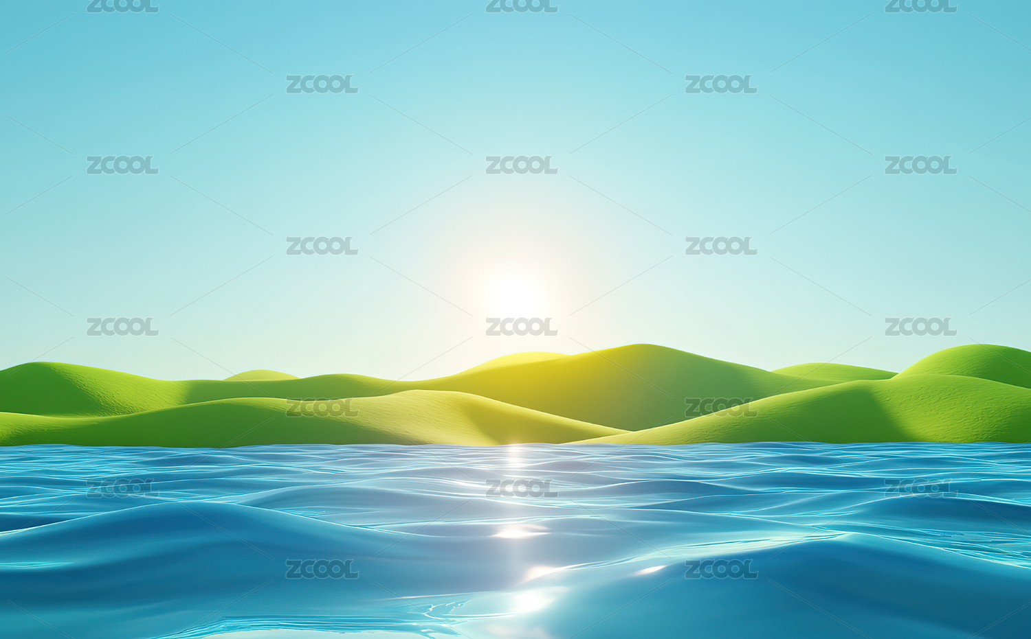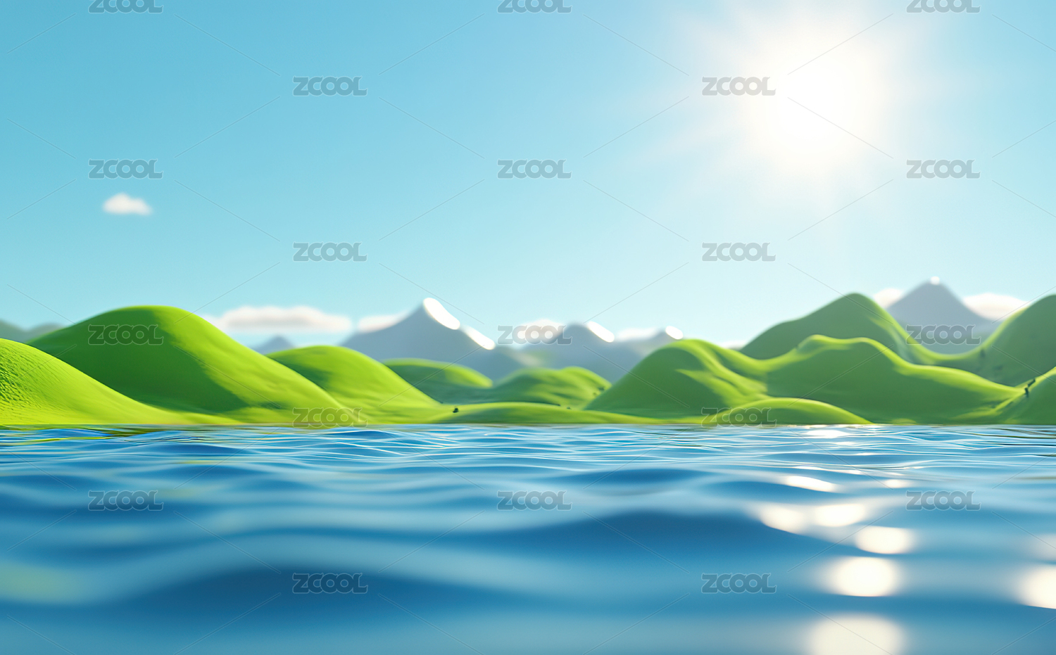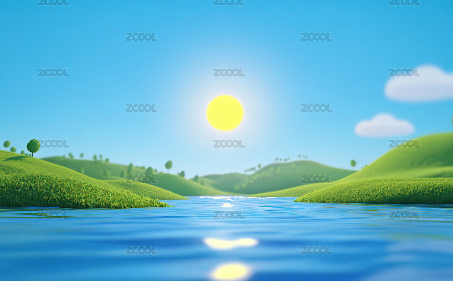 3d渲染的草地湖泊背景图