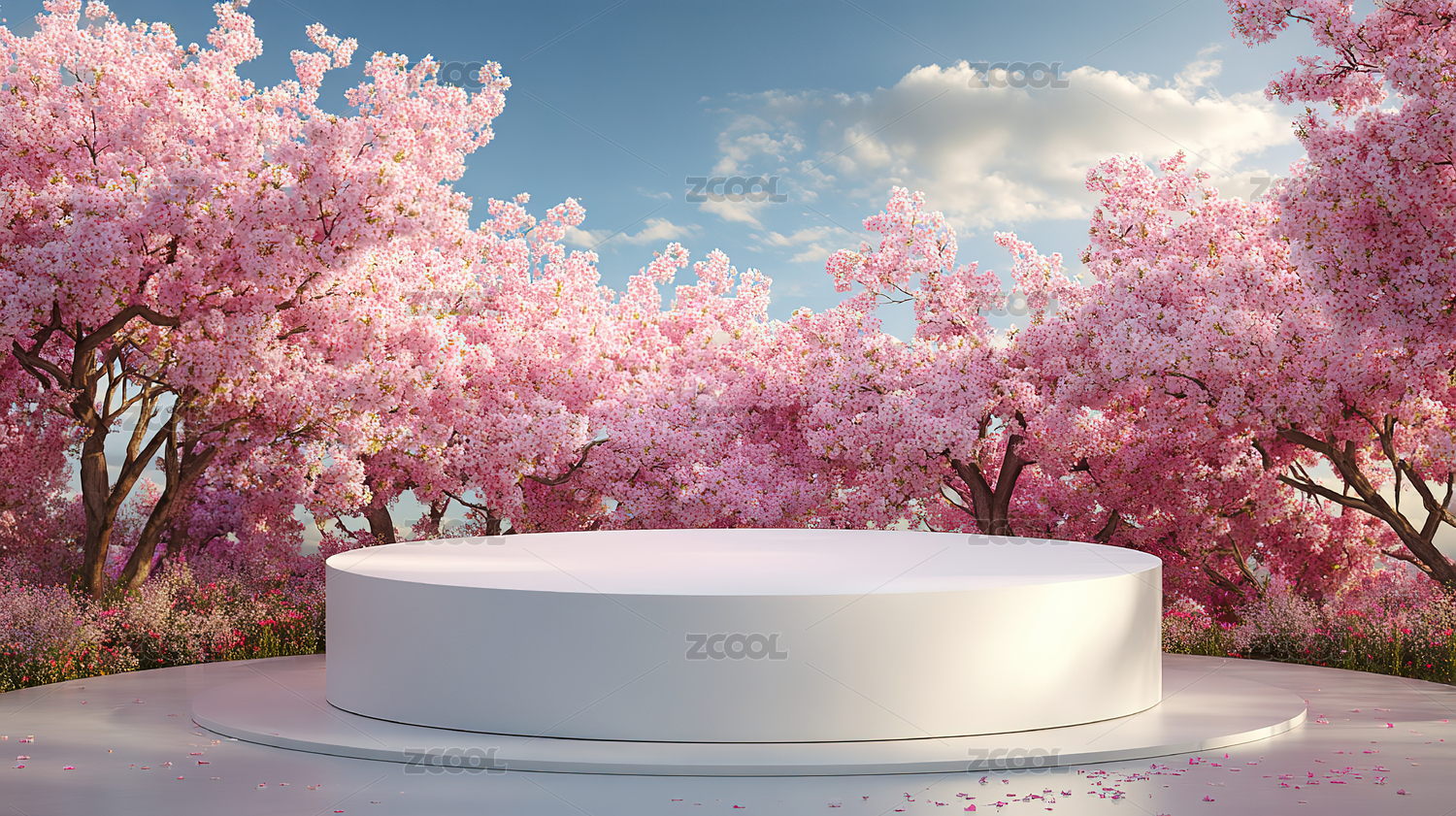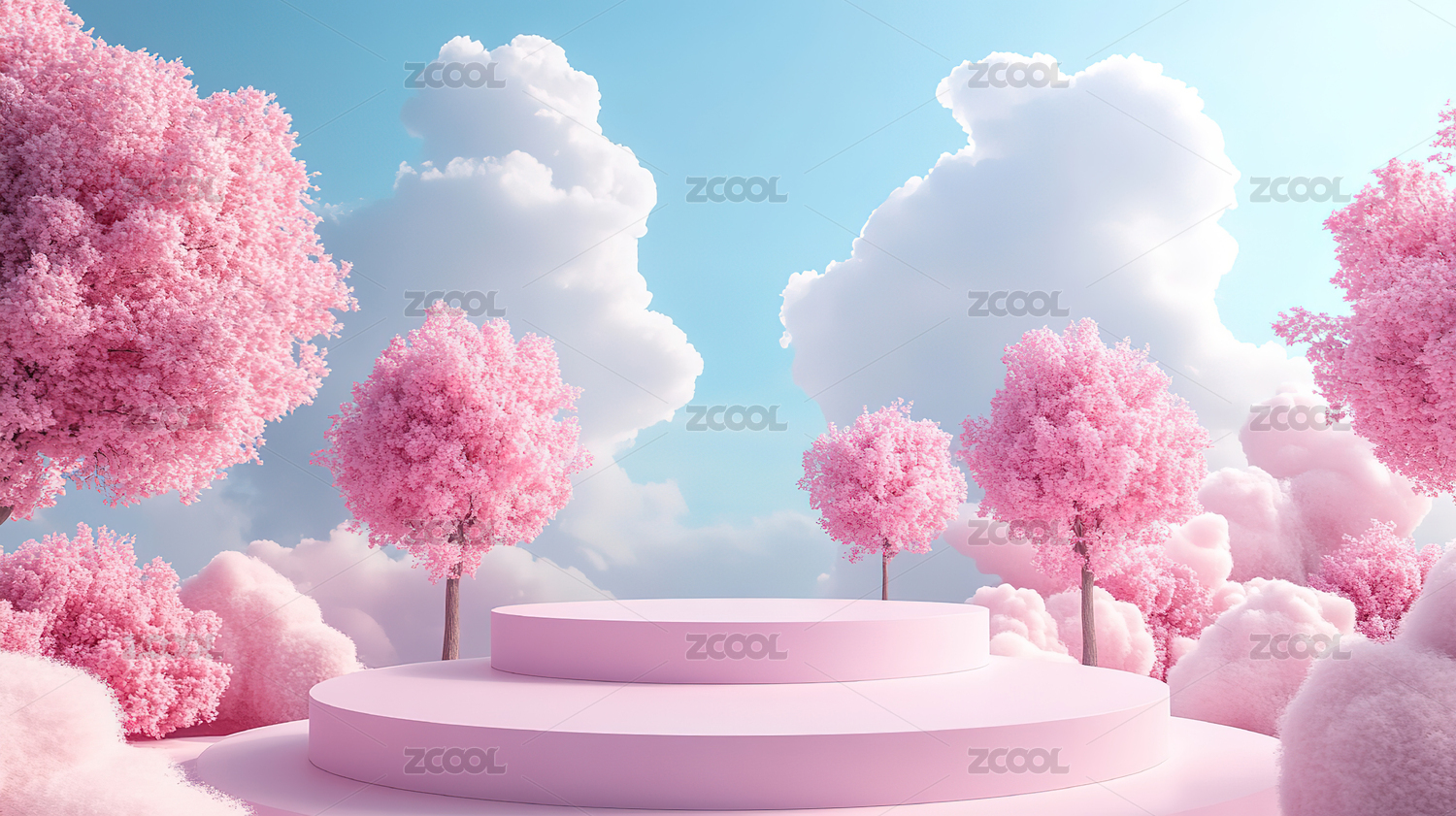 梦幻,粉色场景,背景,天空,云朵,光线柔和,盛开的樱花树,花朵,粉色,树木