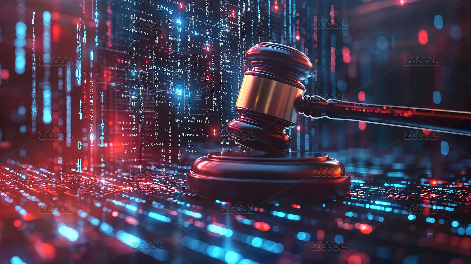 数字木槌象征着数据背景上的网络法律