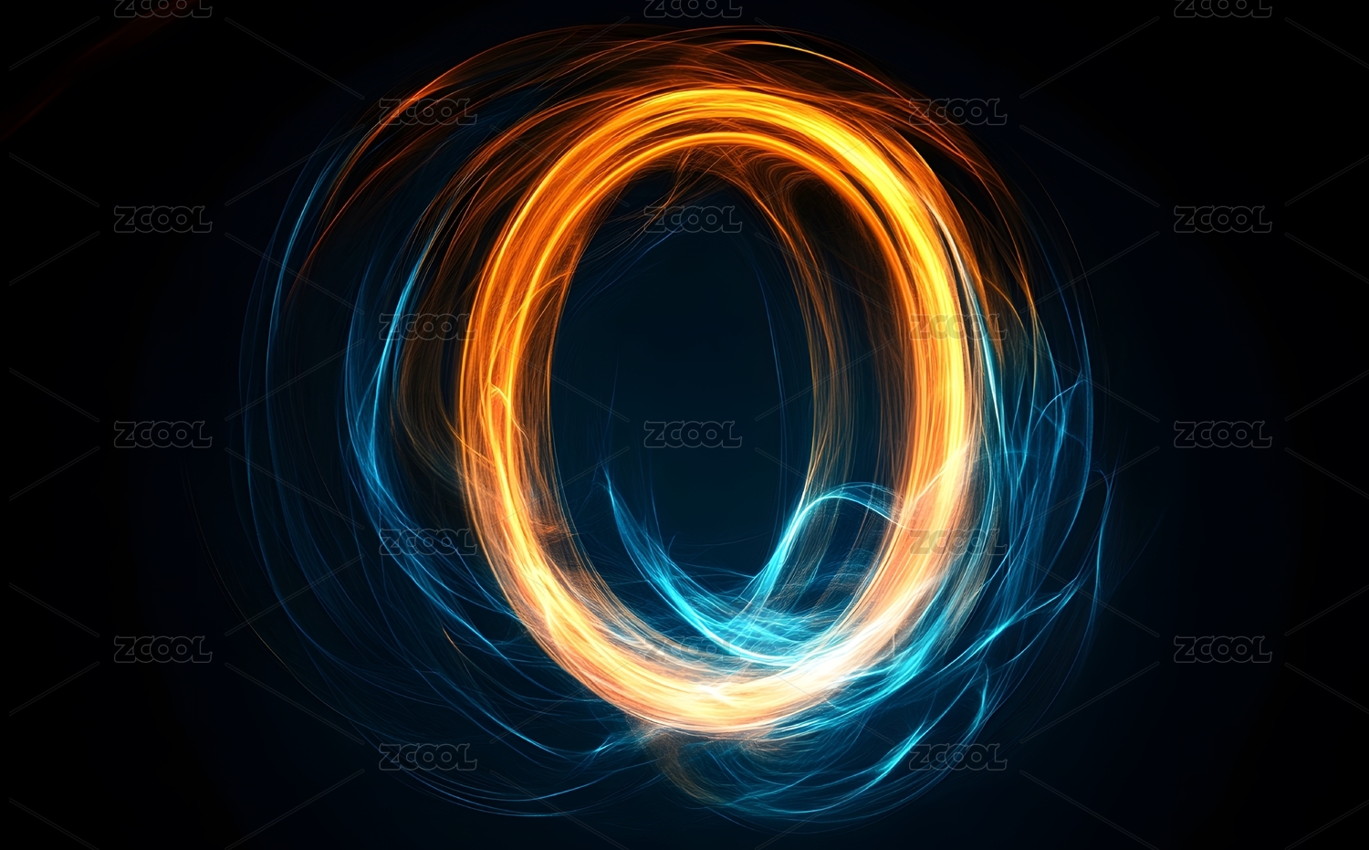 黑色背景上的金色和蓝色圆环光影,抽象背景