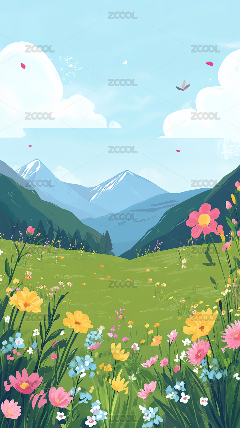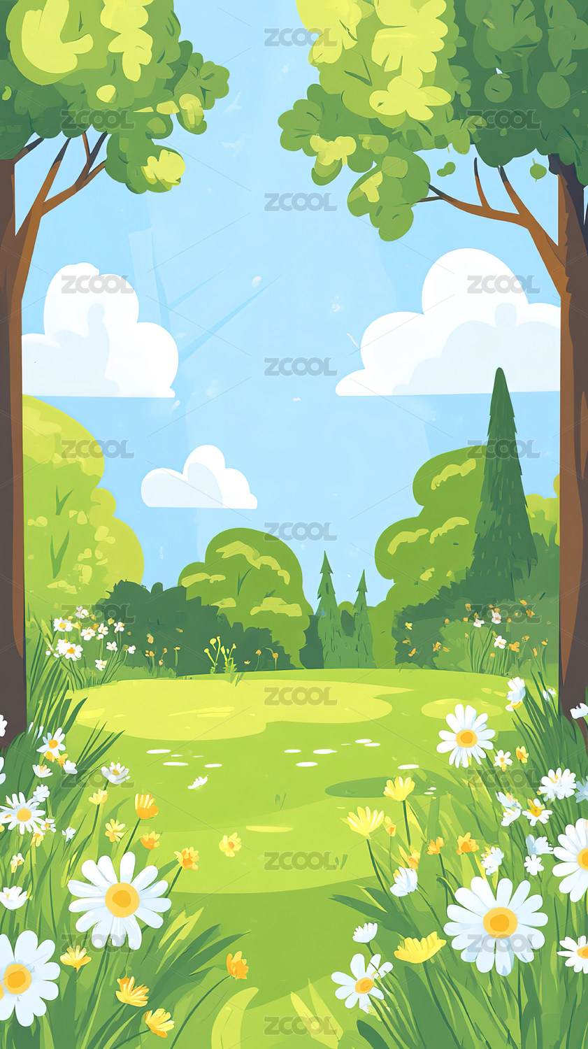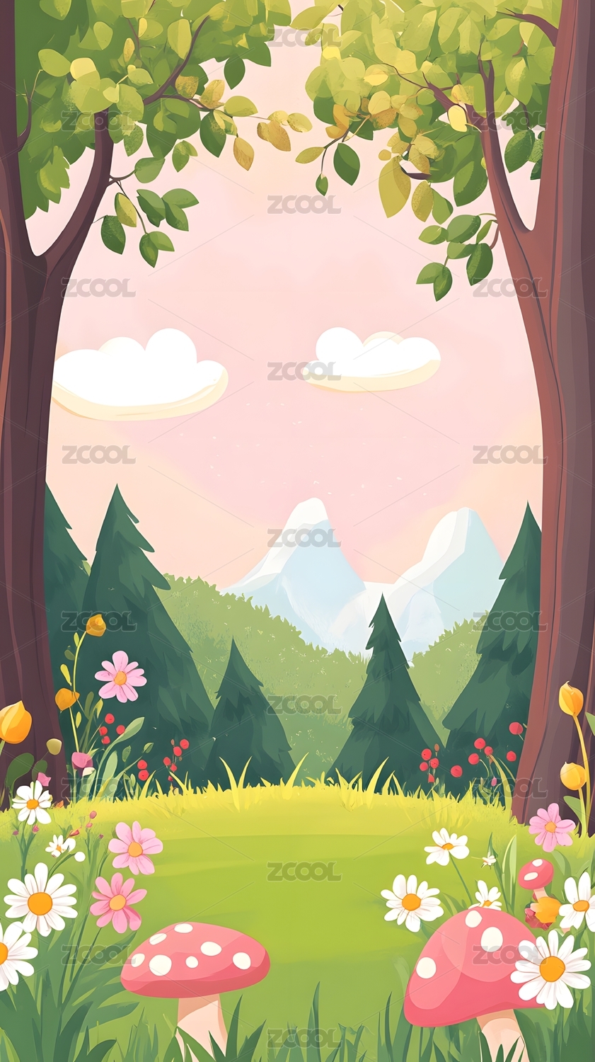 卡通,梦幻,童话,森林,树木,花朵,植物,风景,自然,壁纸