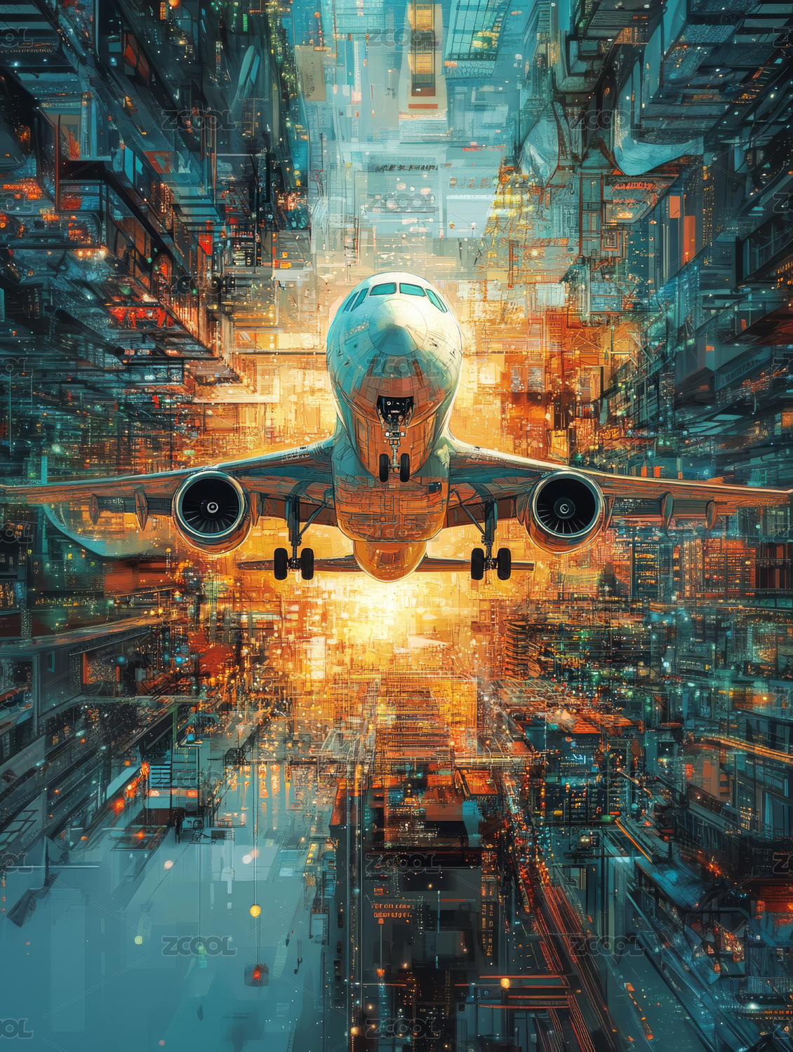 三维,立体,3D,飞机,科技,未来,模型,蓝色,灯光,夜晚