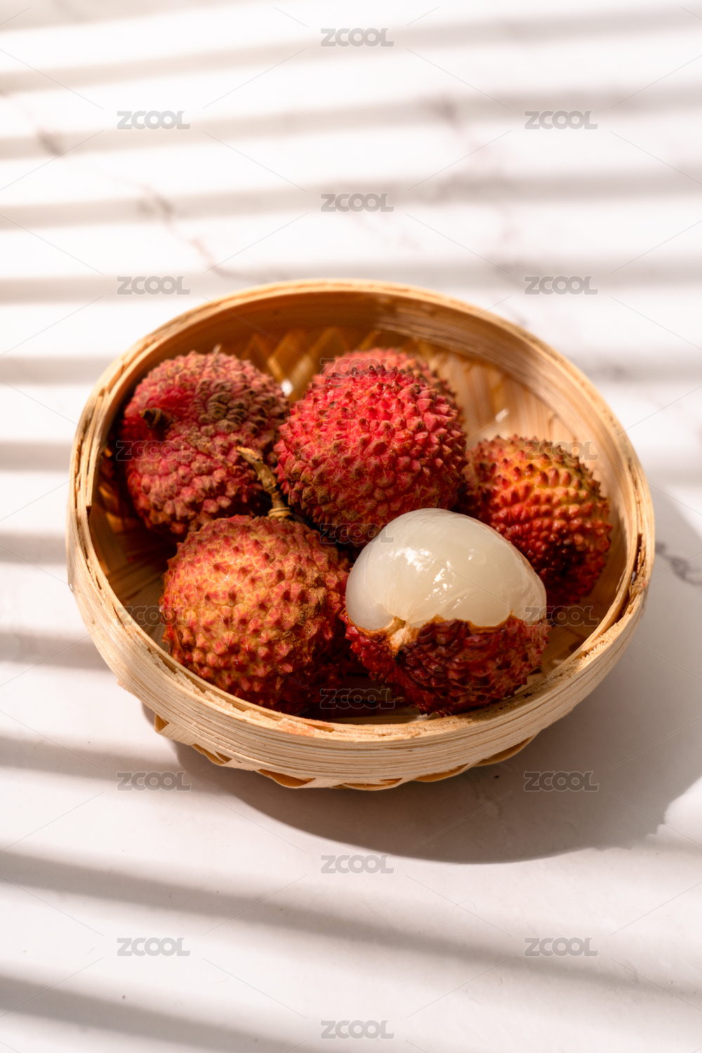 特写藤编东南亚风格碗装荔枝