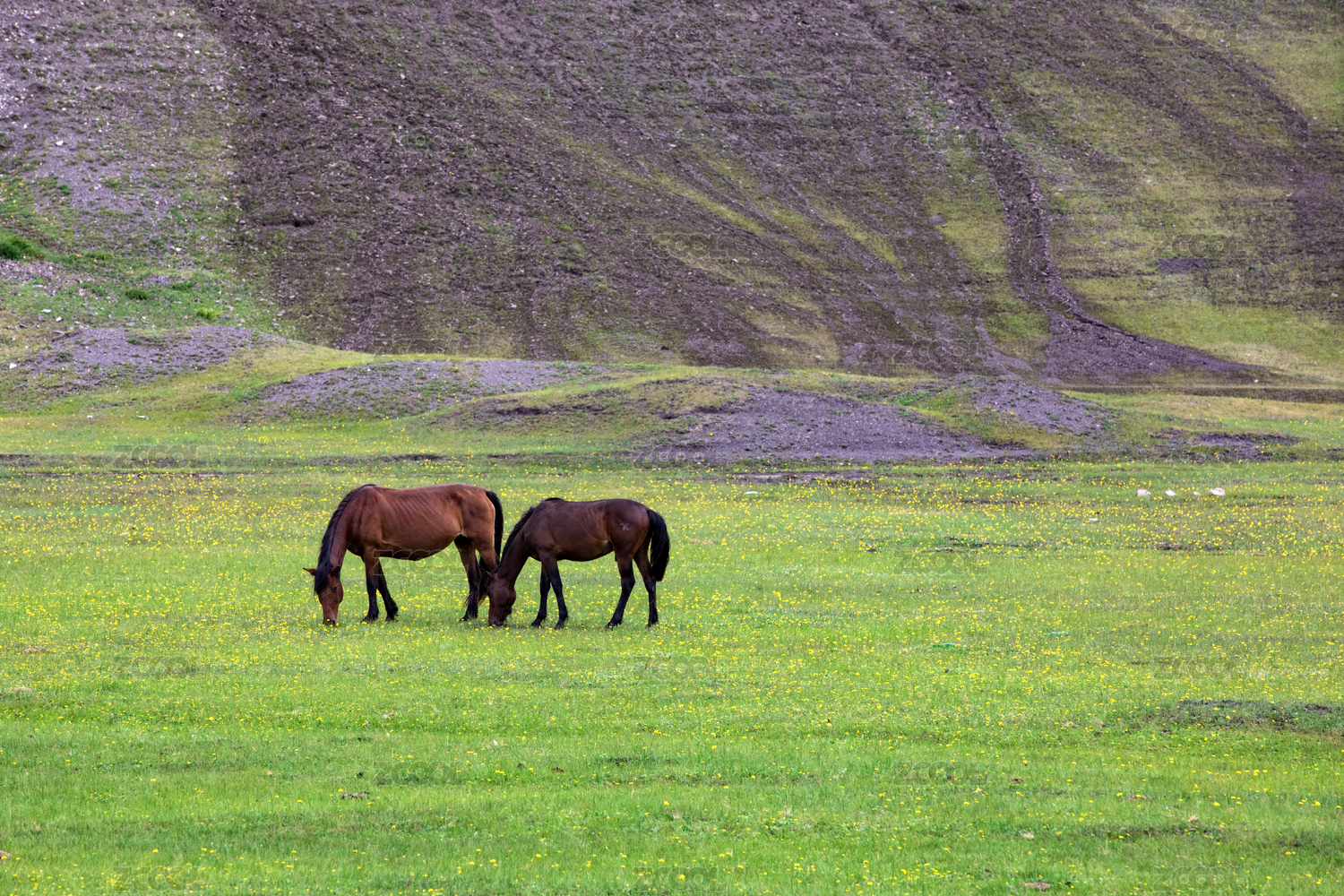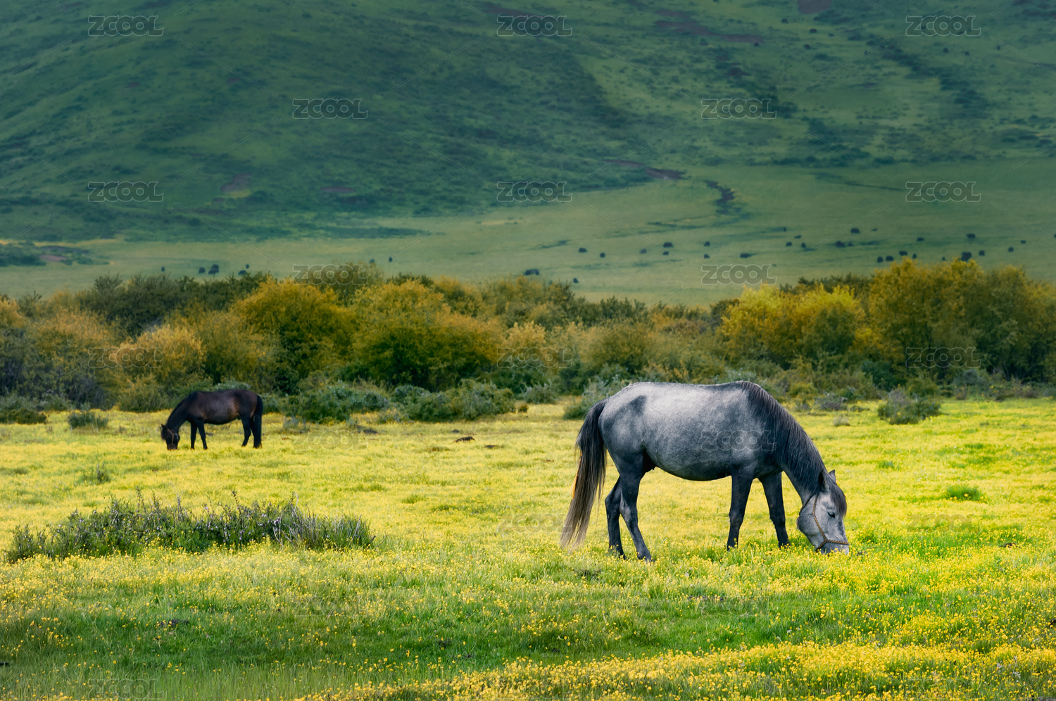 中国新疆伊犁昭苏湿地公园草原马自然风光