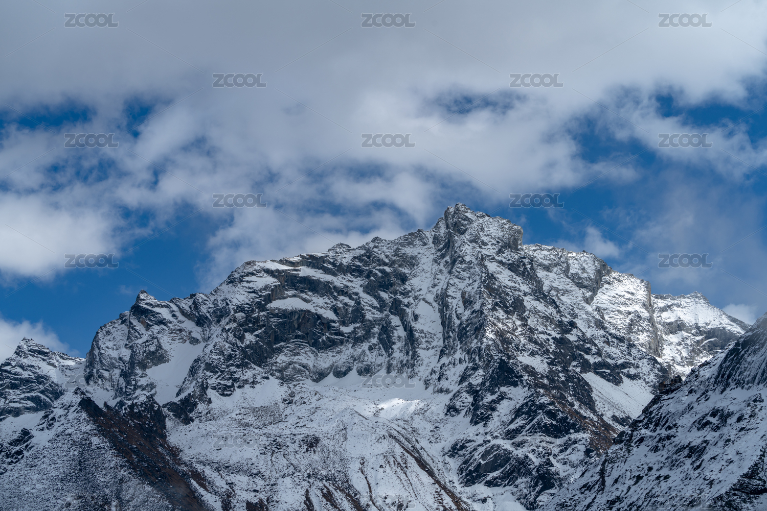 四姑娘山双桥沟景区雪山晴空蓝天白云