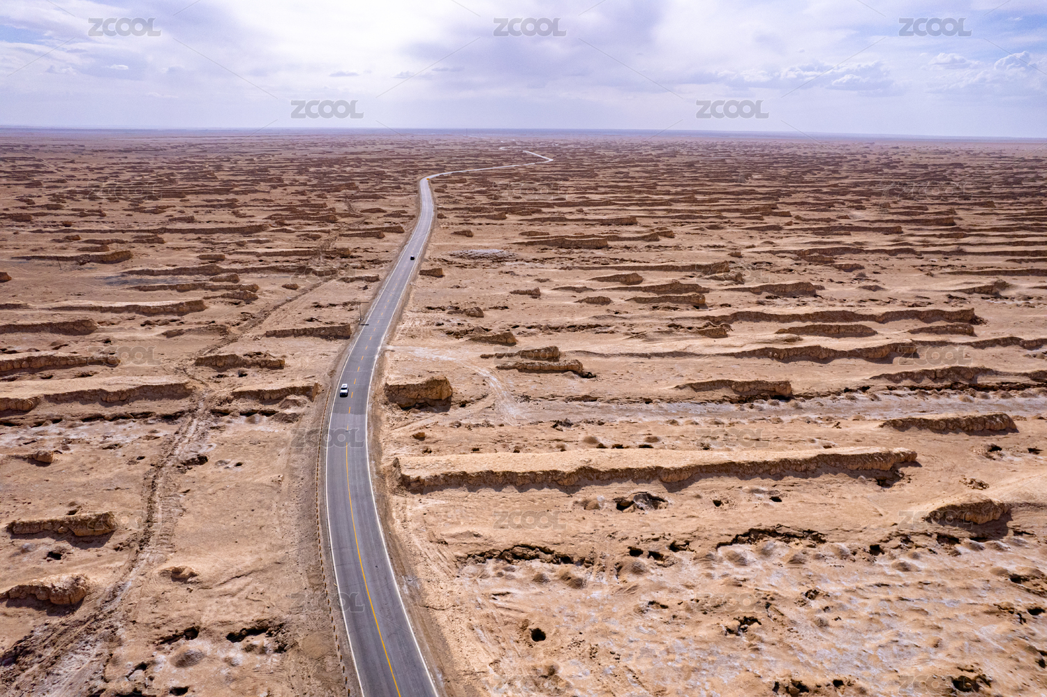 中国青海海西G315国道公路戈壁沙漠雅丹
