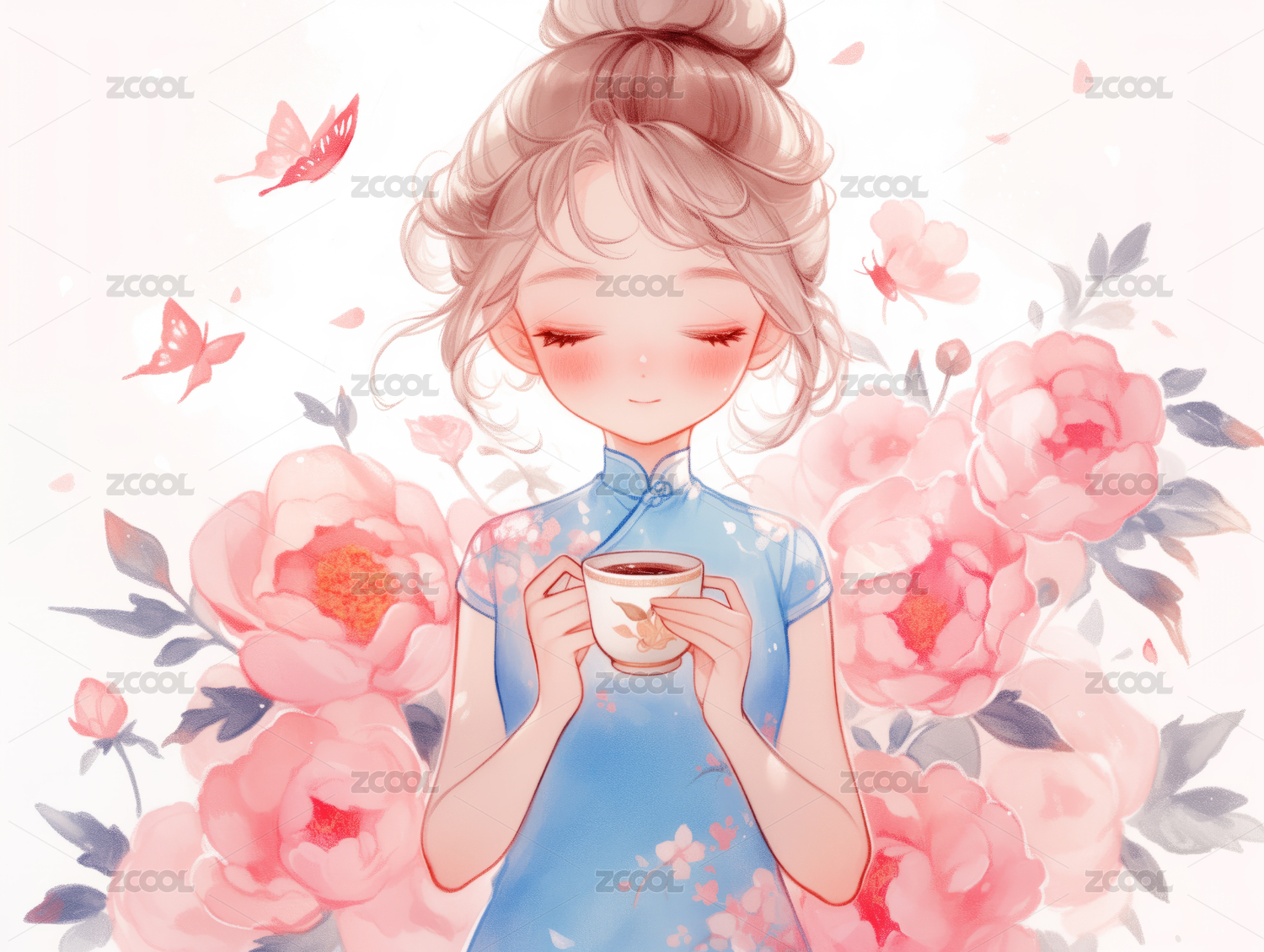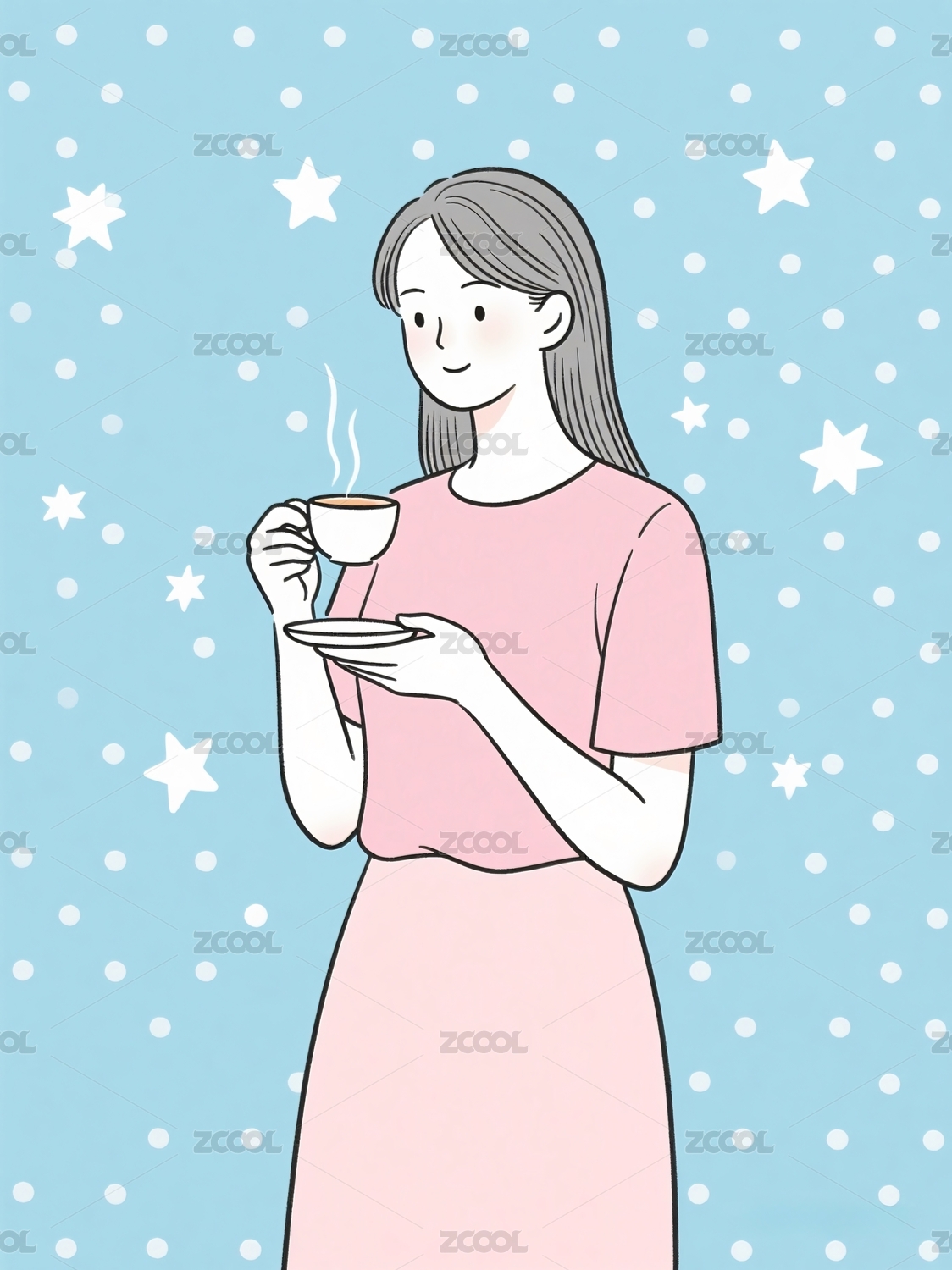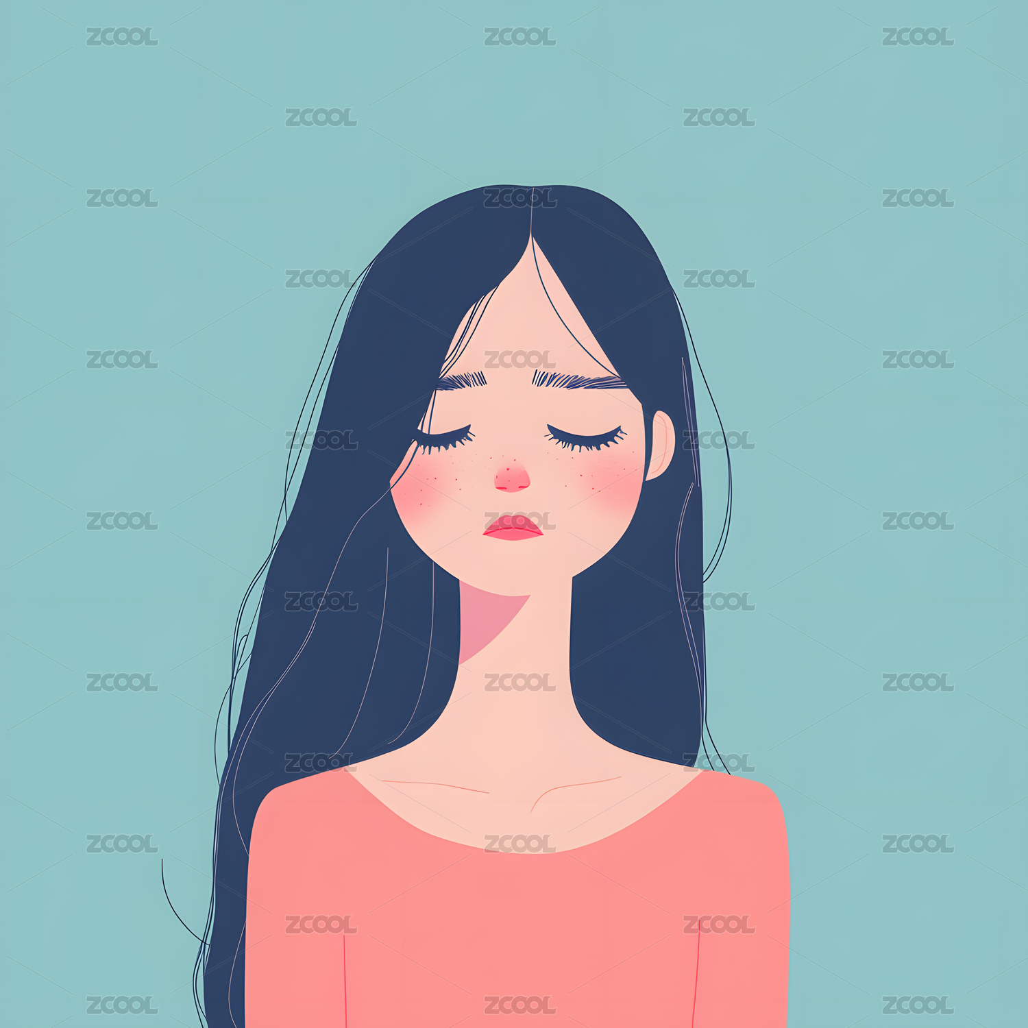 粉黑少女时尚肖像大头照矢量扁平化设计背景