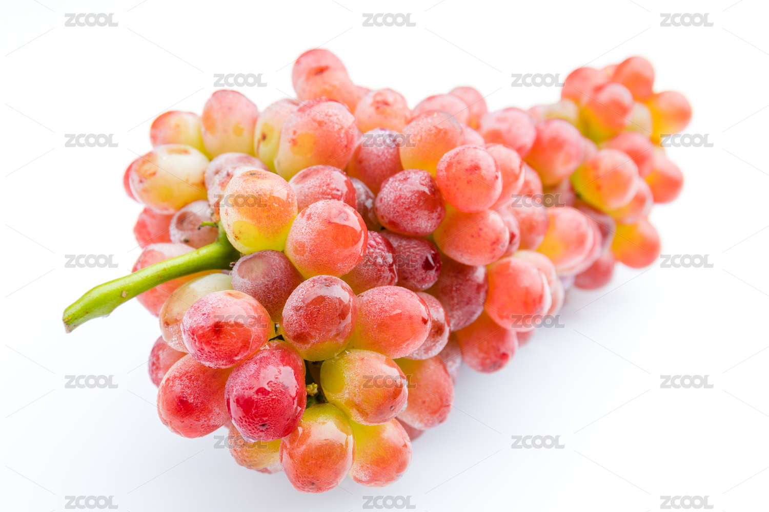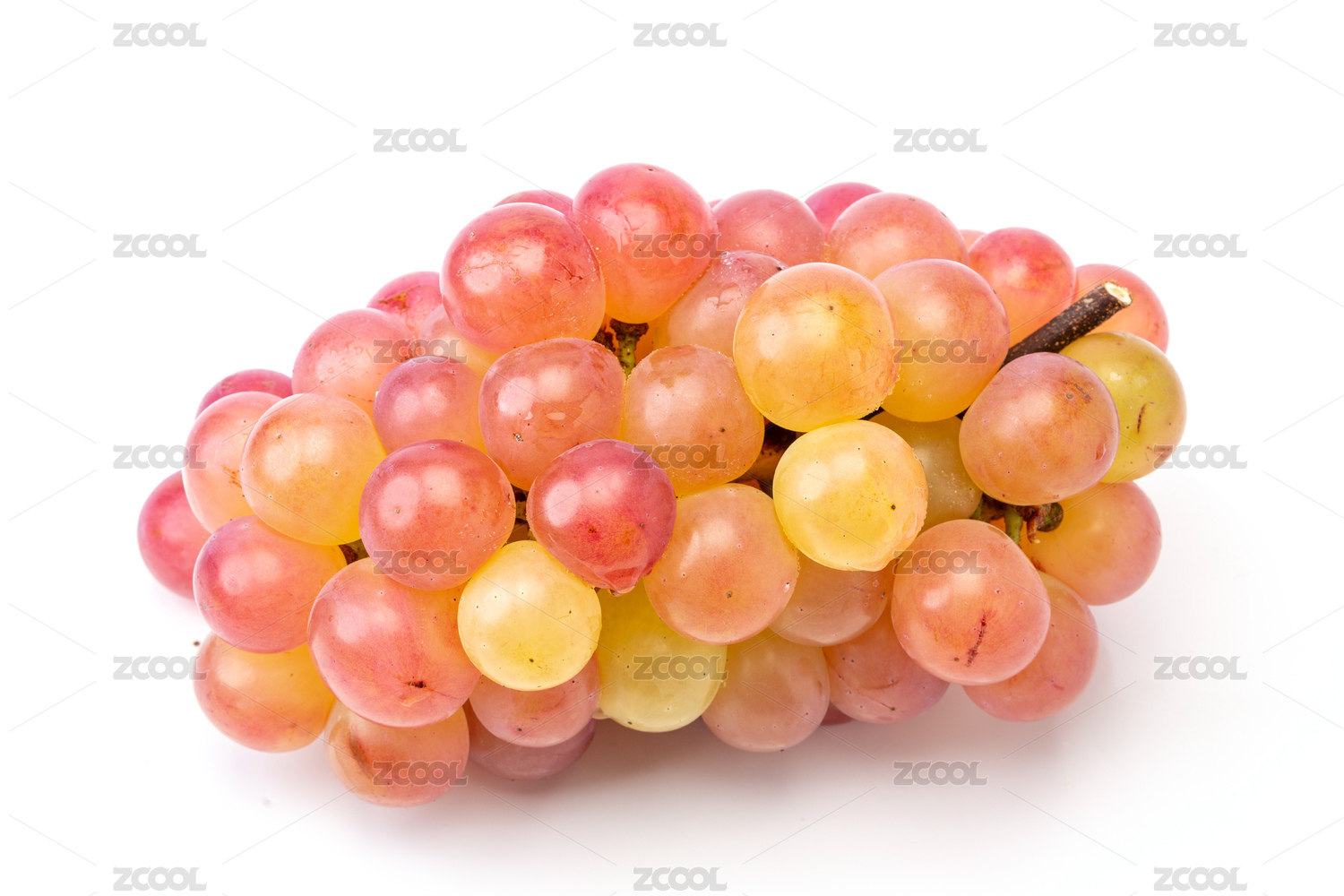 白色背景中一串新鲜的无籽红提