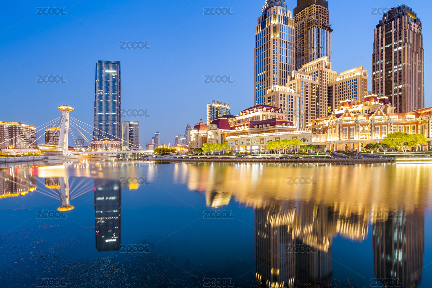 天津津湾广场金融中心海河城市建筑日落晚霞