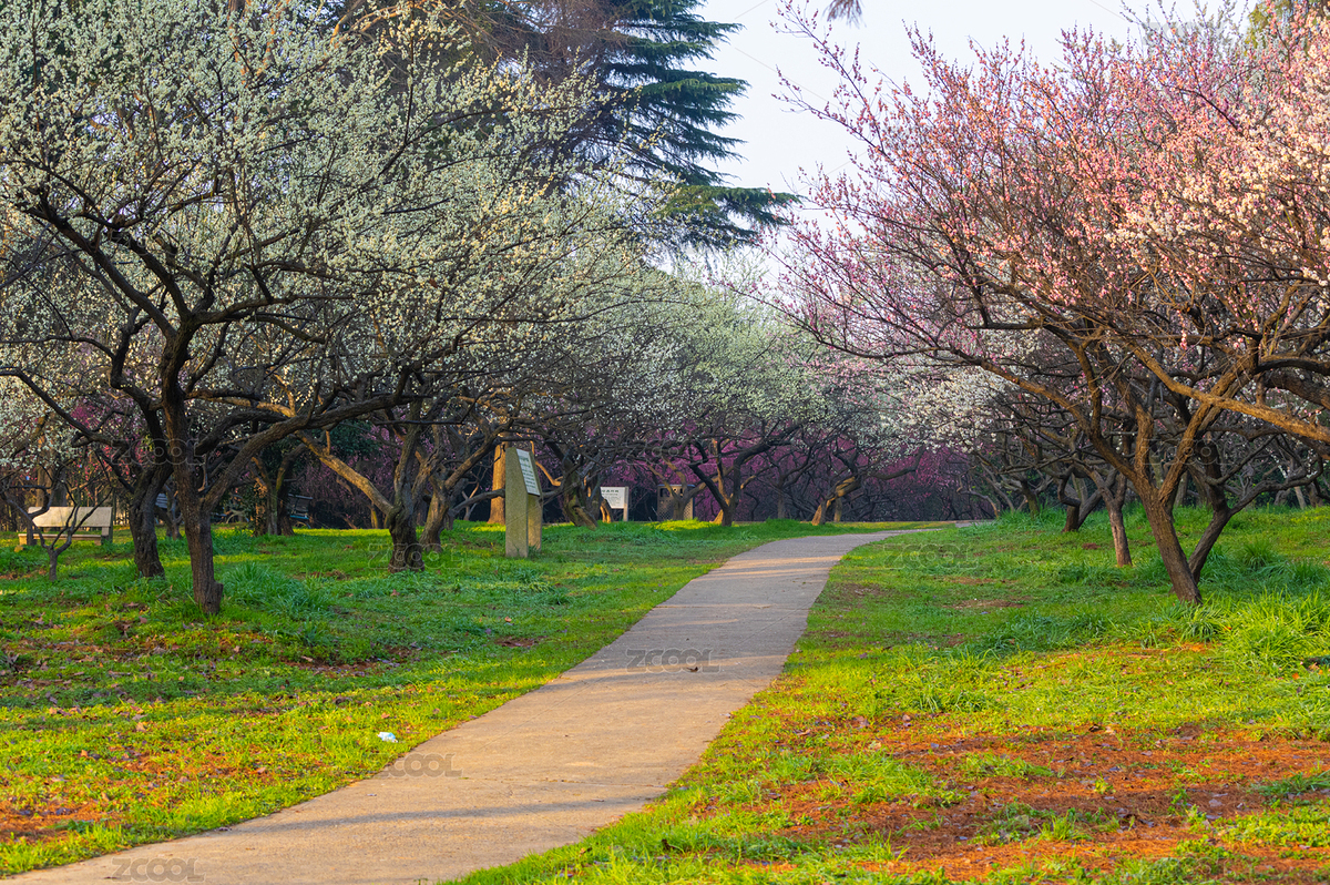 江苏南京明孝陵梅花山景区梅花开日出景观