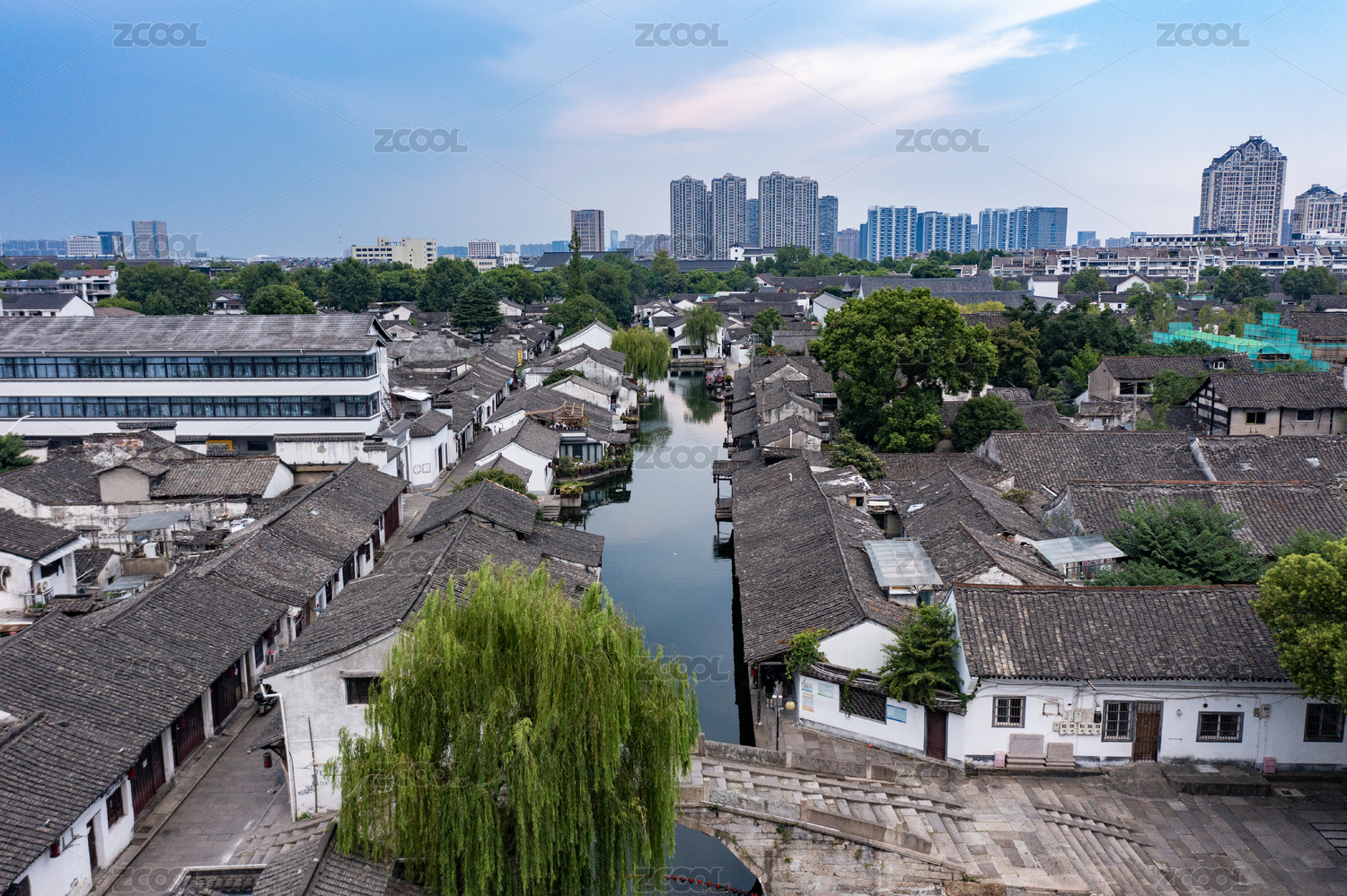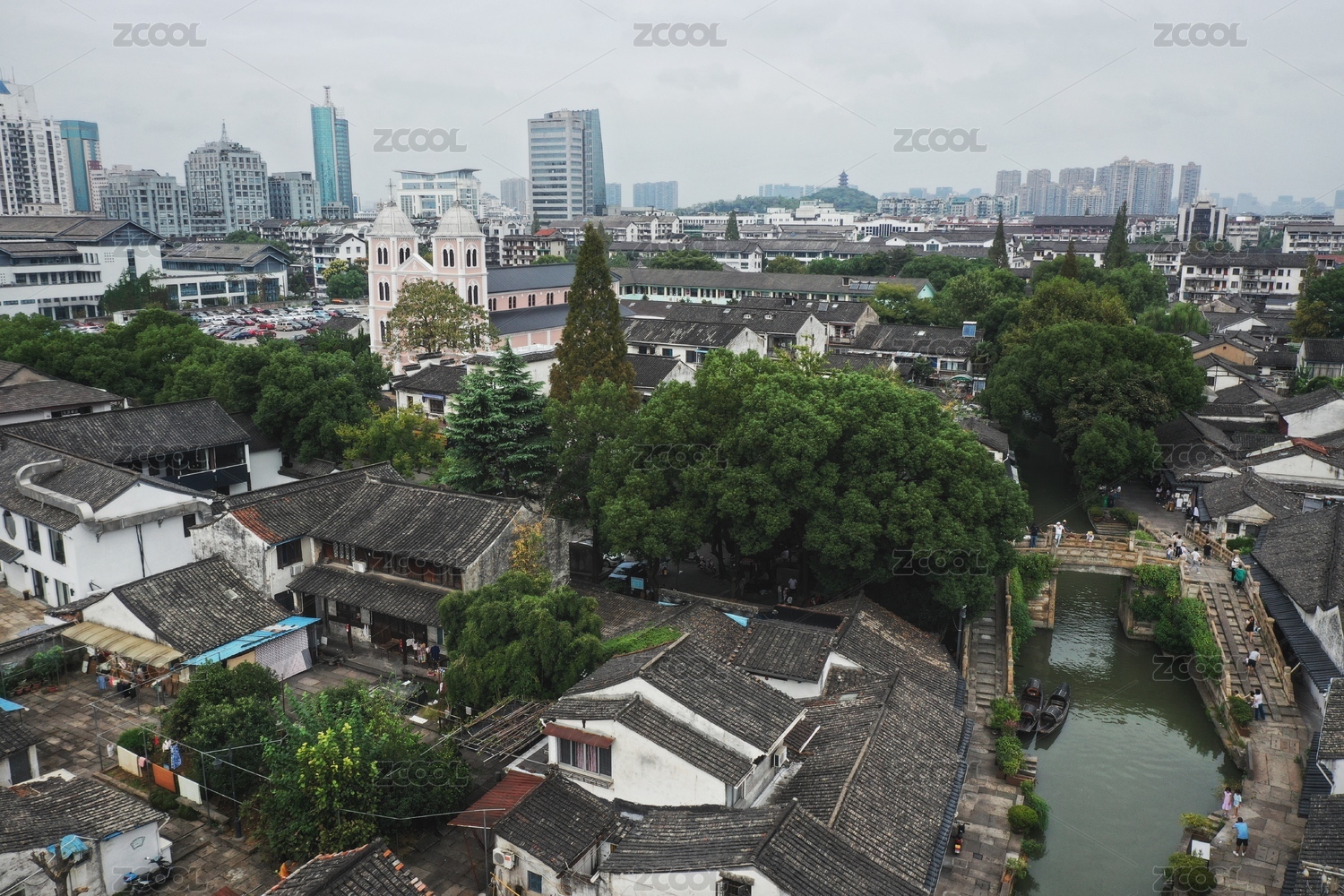 航拍苏州平江历史文化街区平江路白墙黛瓦