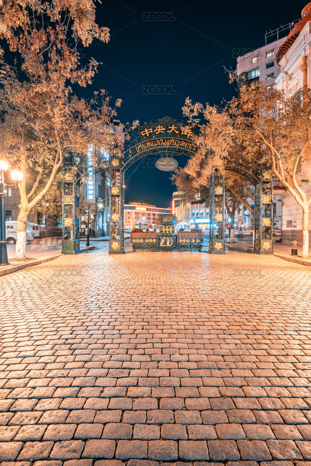 街道,夜晚,购物街,商业街,步行街,地板石,哈尔滨,欧式建筑,购物商场,中央大街