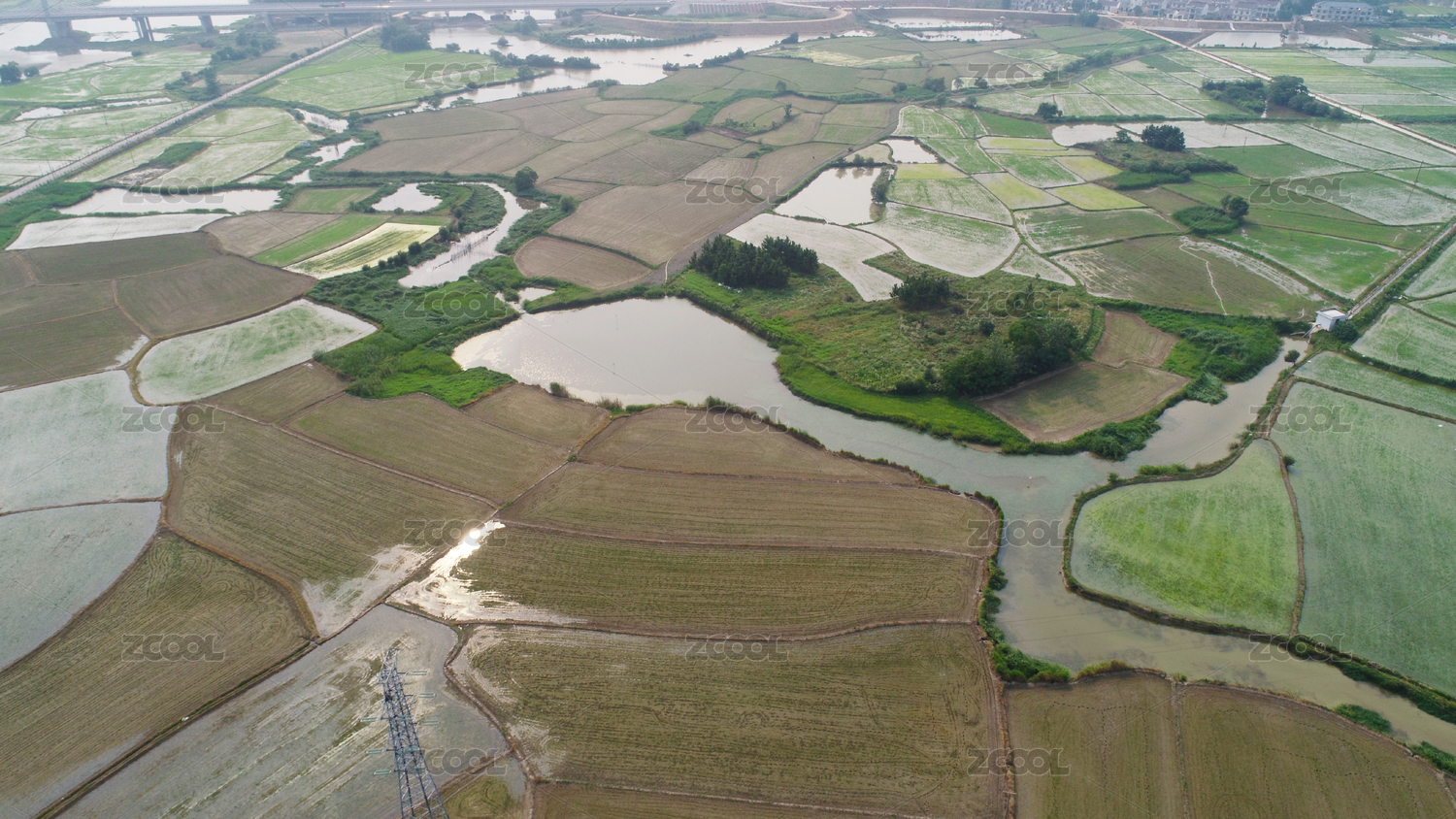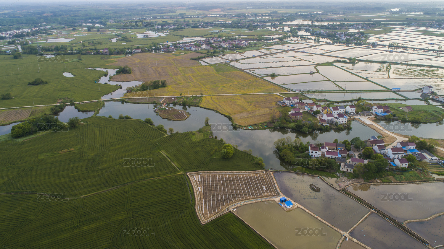 航拍,航拍视角,高视角,无人,白昼,宁静,绿色,田园,田园风光,田地