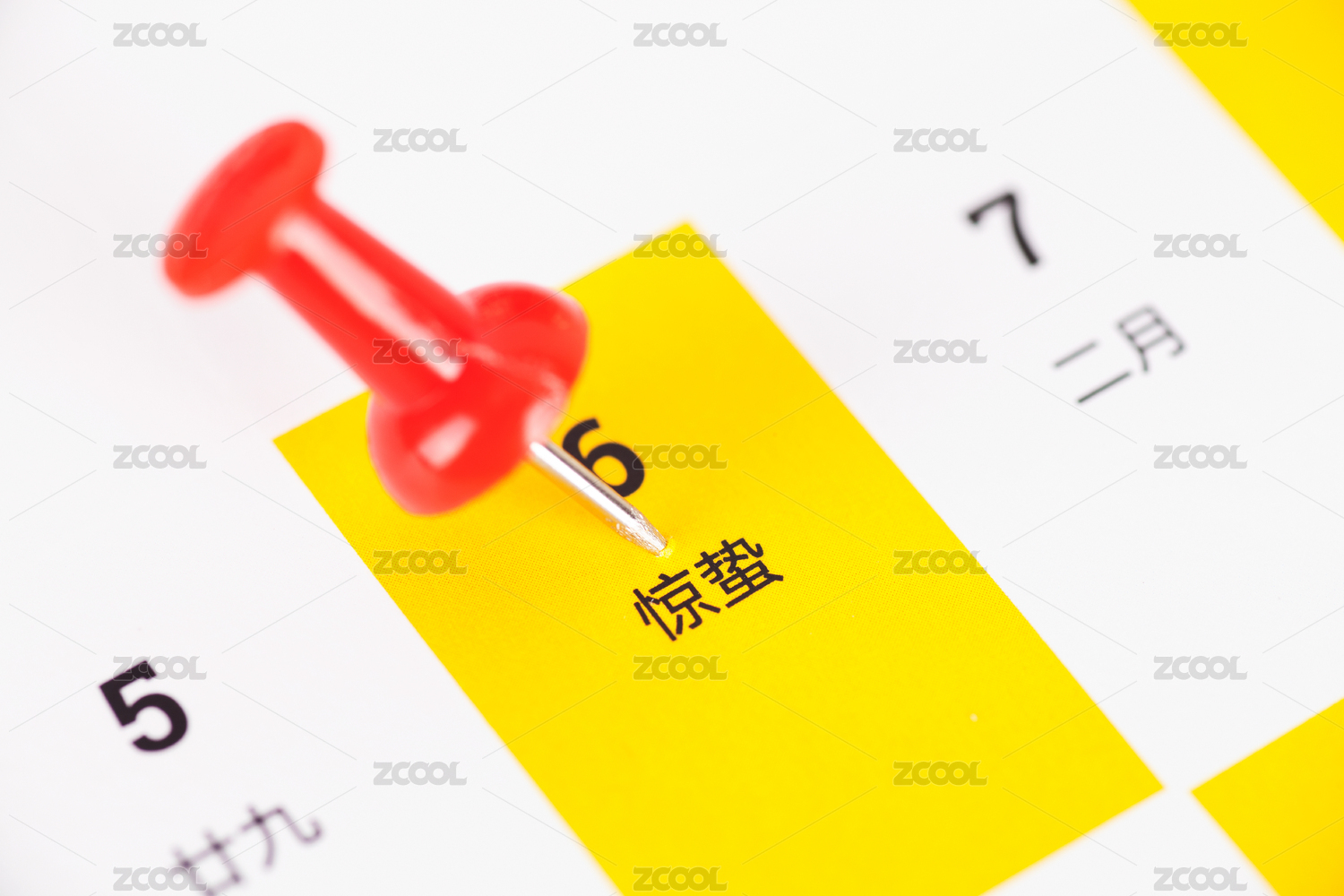 台历上被大头钉标注的中国24节气之一的惊蛰