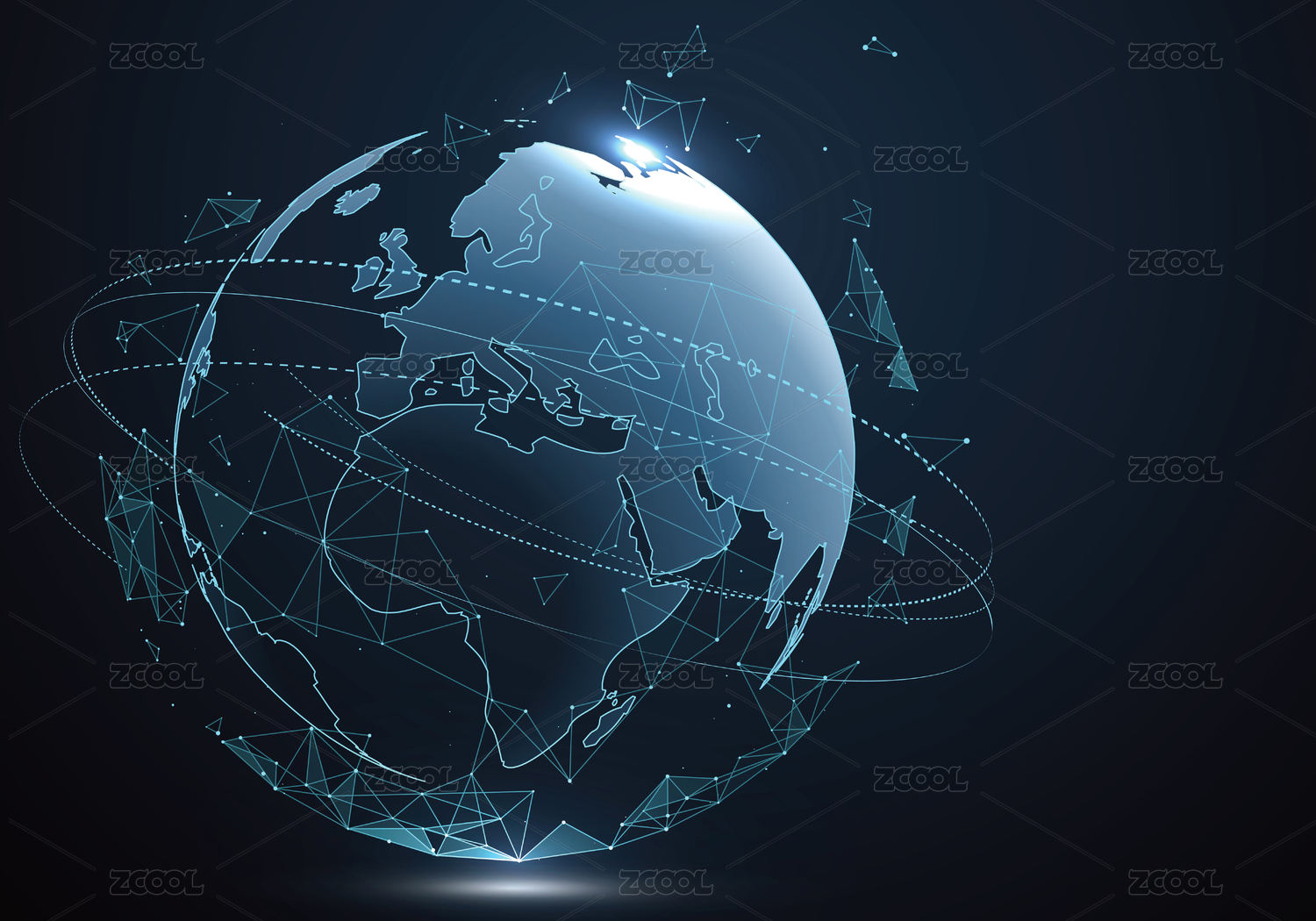 未来科技、全球化界面、科技背景图片、抽象地球。