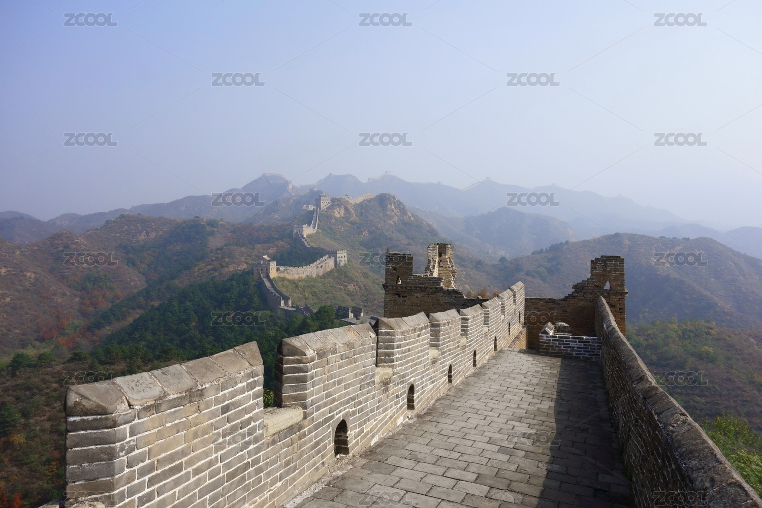 在北京八达岭长城上看远山