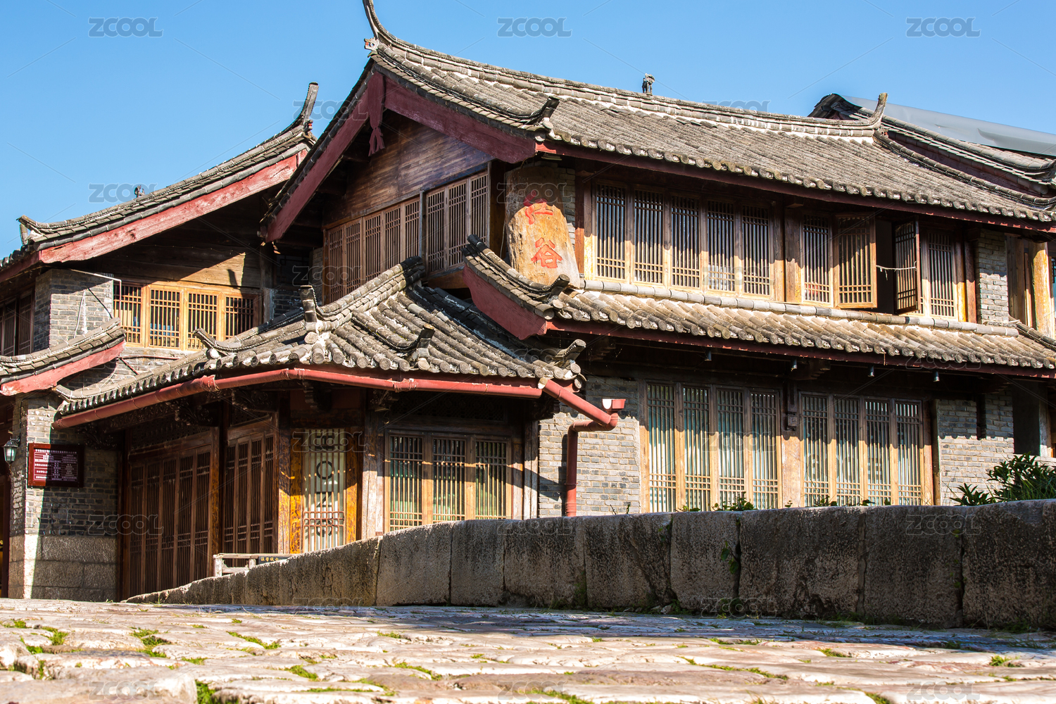 云南长江第一湾景区的石鼓镇的古建筑和风光