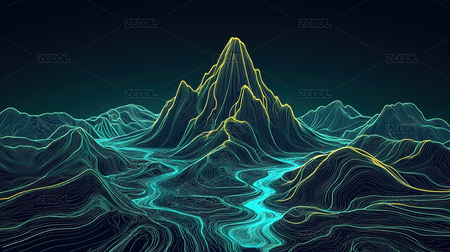 科技,3D,场景,风景,山水,渐变,蓝色,河流,自然,山