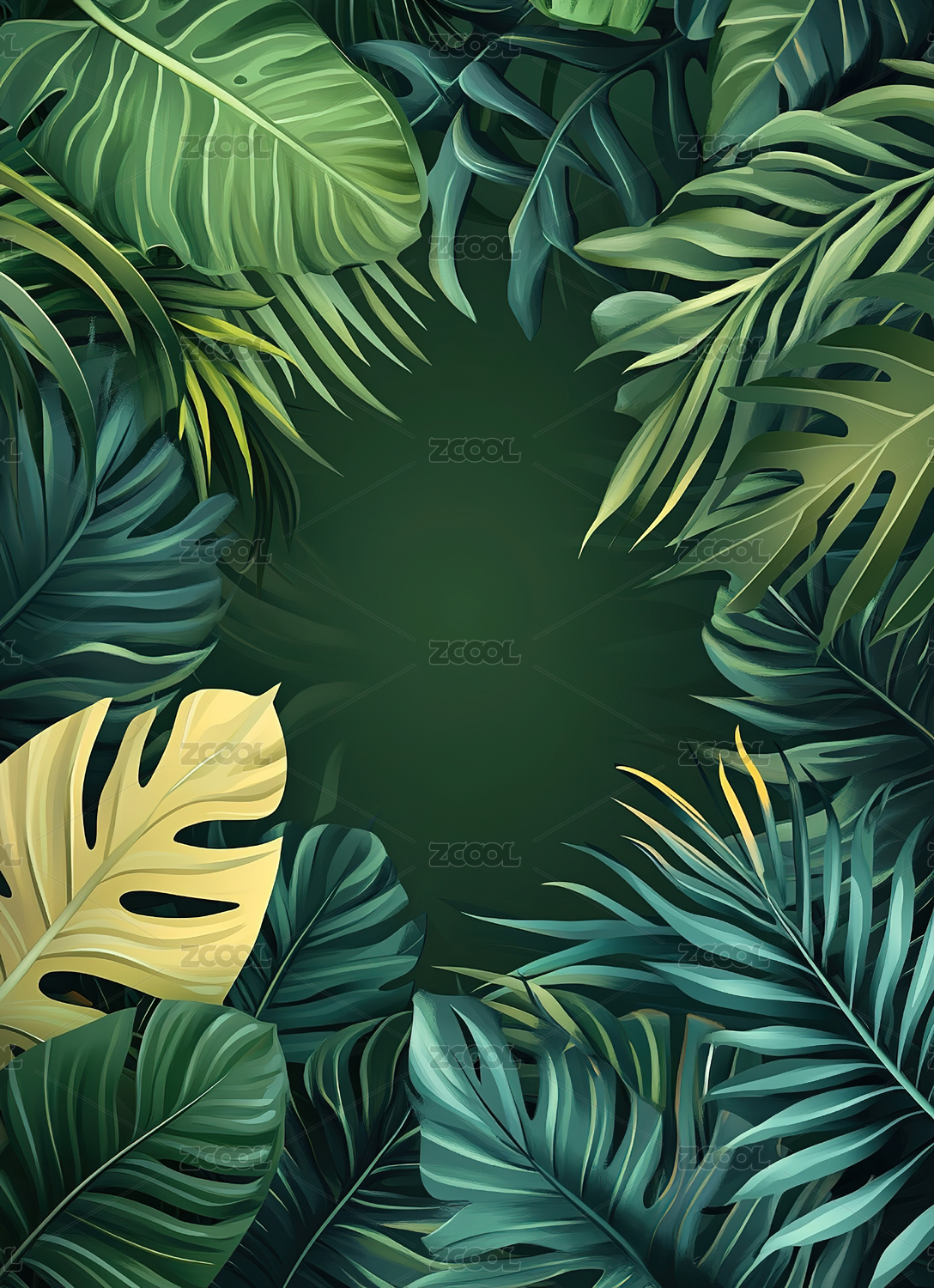 绿色热带叶印花风格四方循环