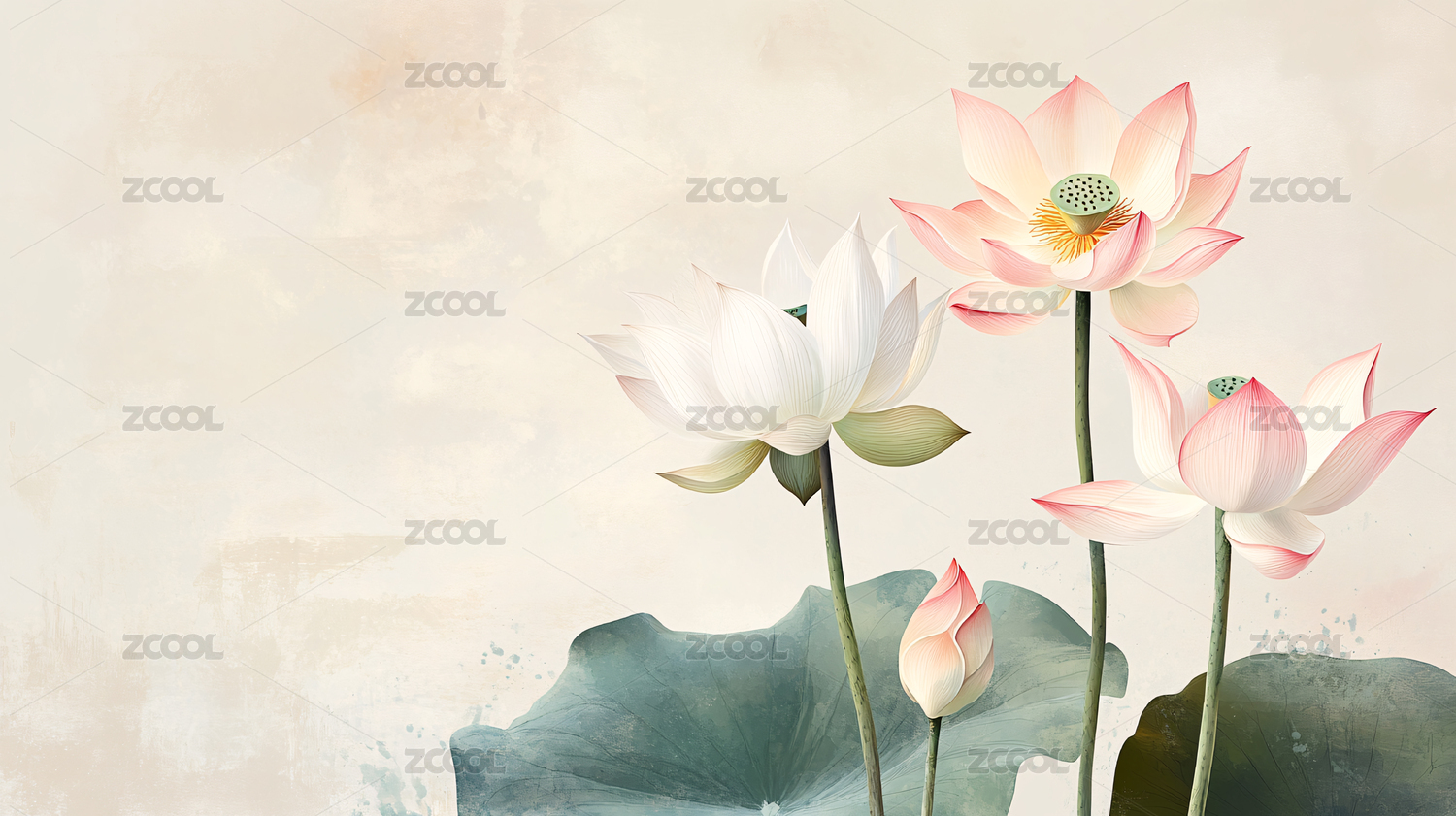 荷叶,荷花,莲花,莲蓬,中式,国风,插画