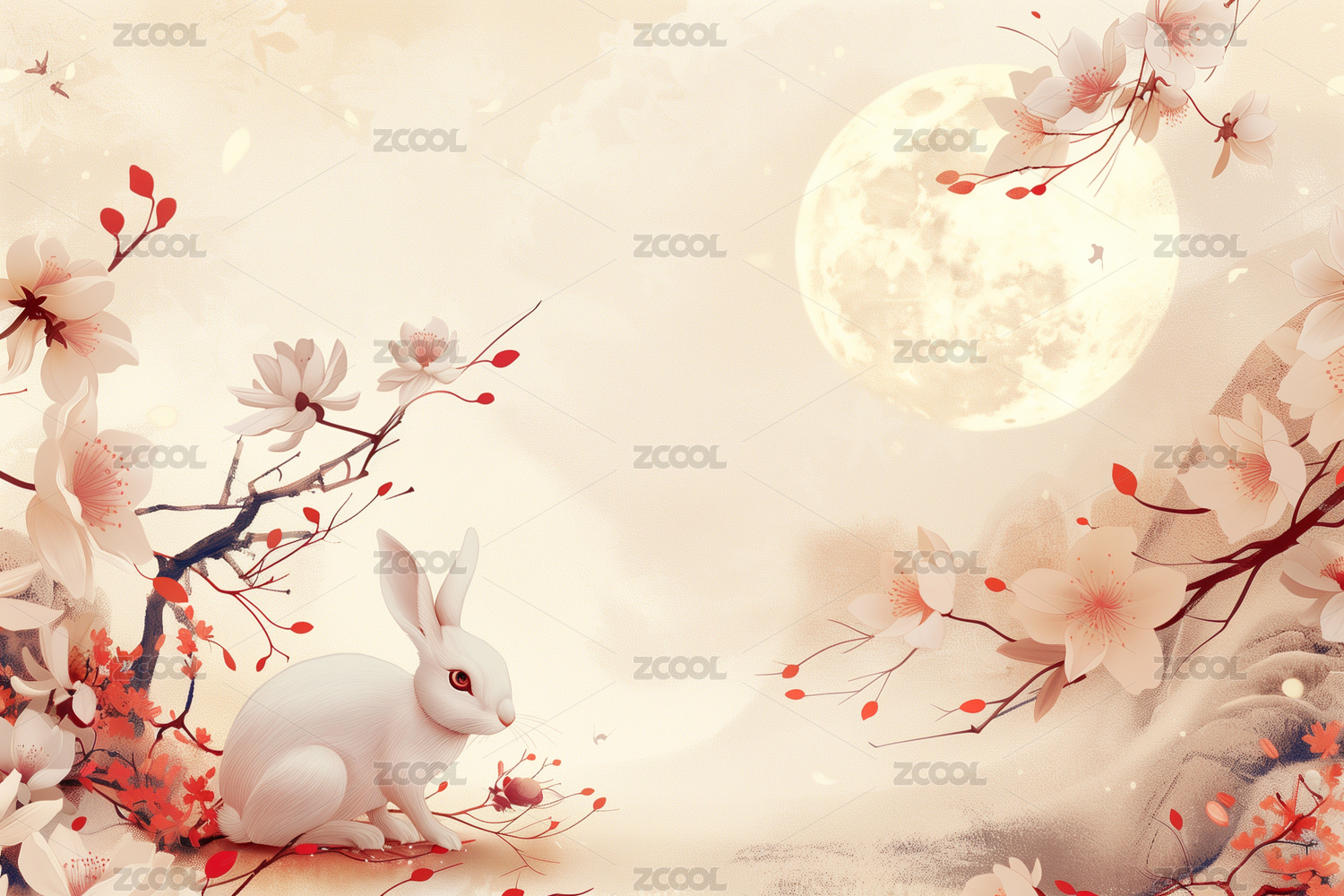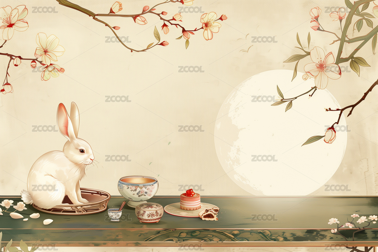 中秋,玉兔,月亮,插画,节日,传统,庆祝,文化,节庆,AIGC202403