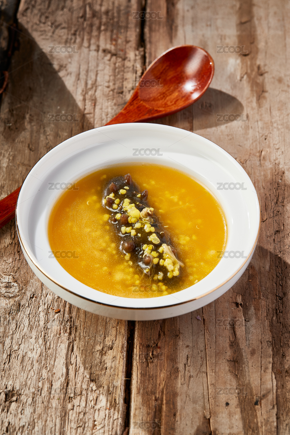 一份五谷小米扣关东辽参放在木板上