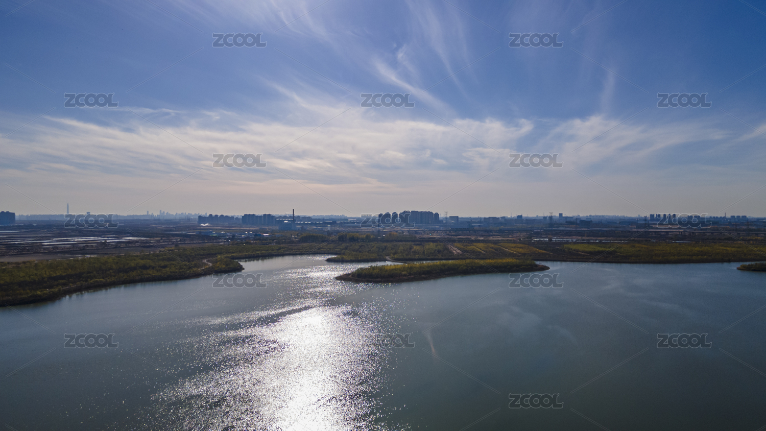 航拍河南郑州象湖生态湿地公园及贾鲁河水系