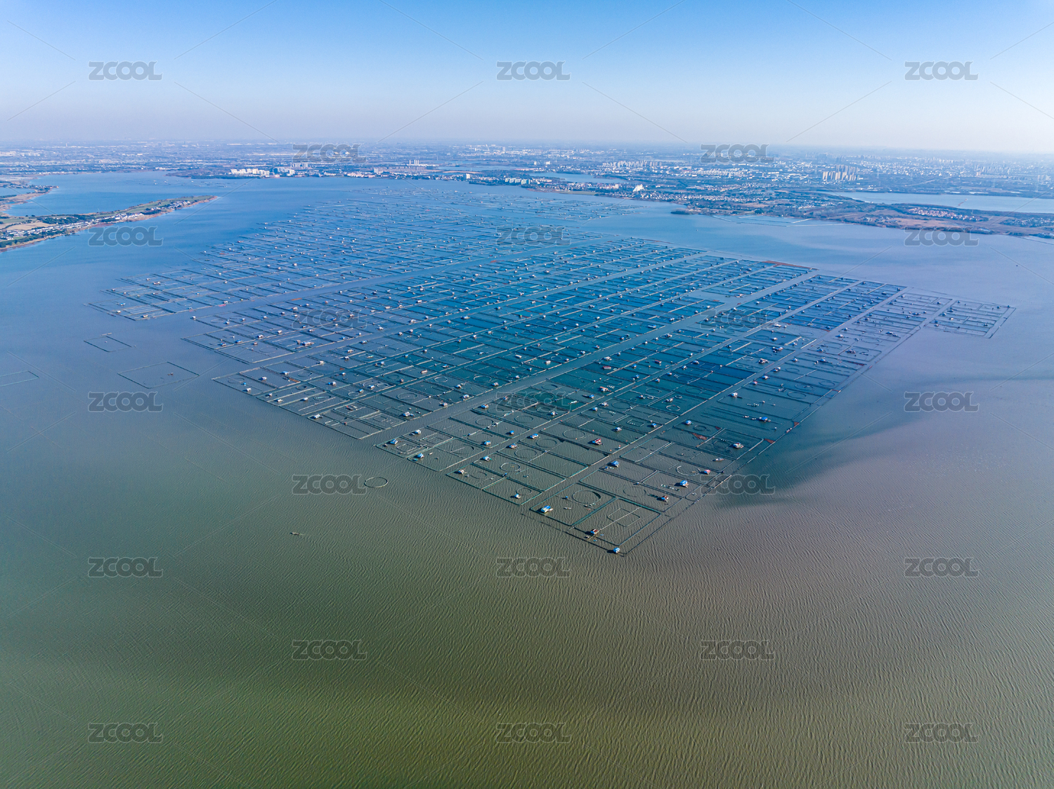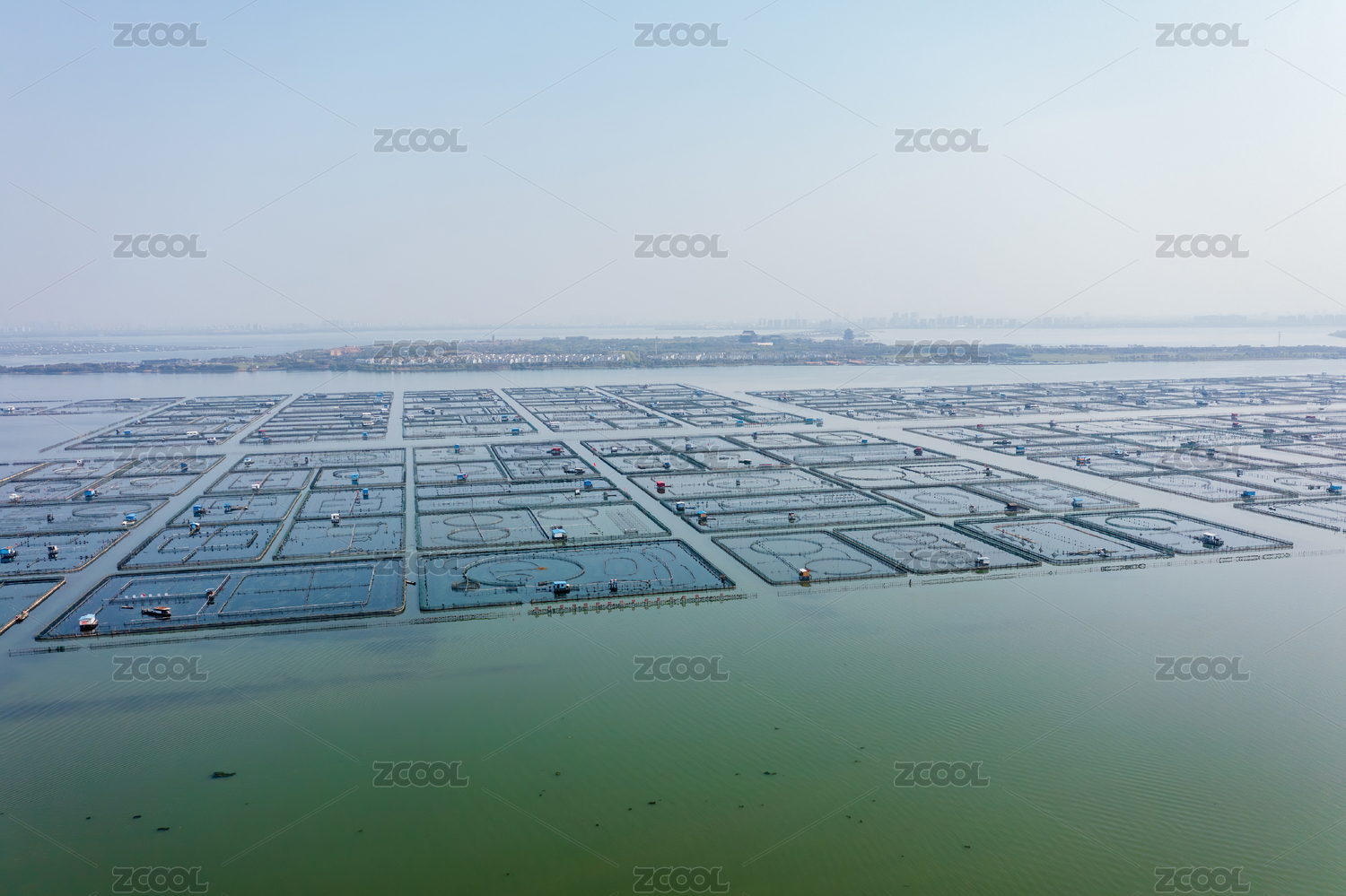 中国江苏苏州阳澄湖大闸蟹养殖基地航拍