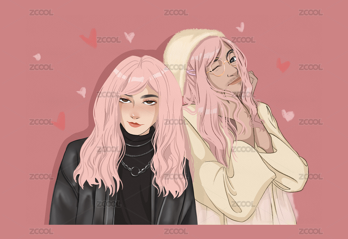 扁平风格美式时尚情人节情侣拥抱亲吻插画