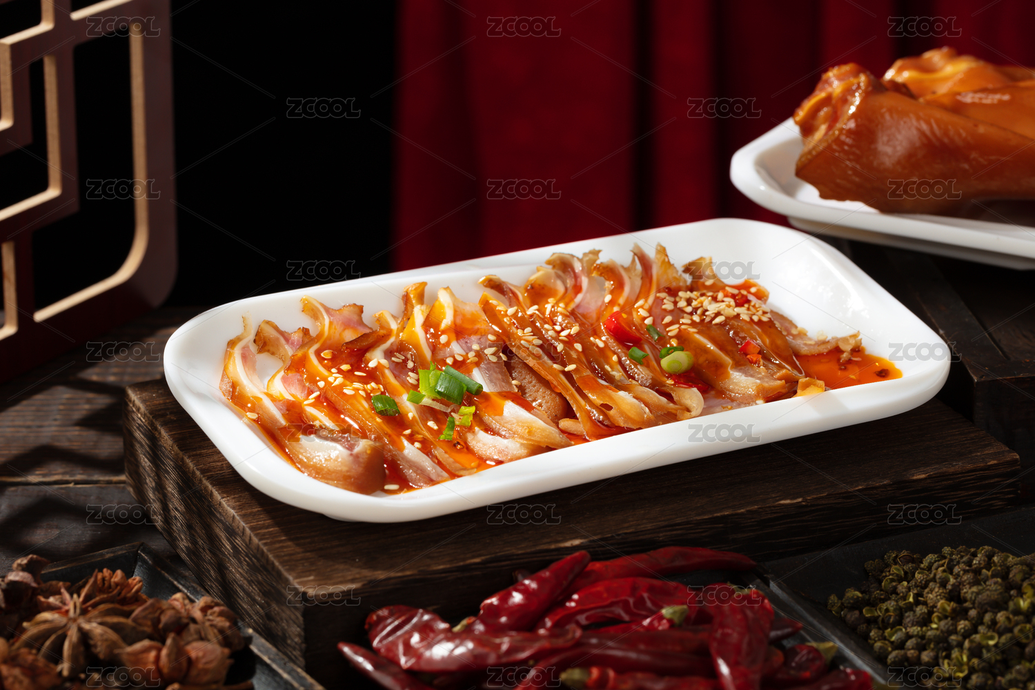白盘子里的凉菜川渝卤菜麻辣红油猪耳