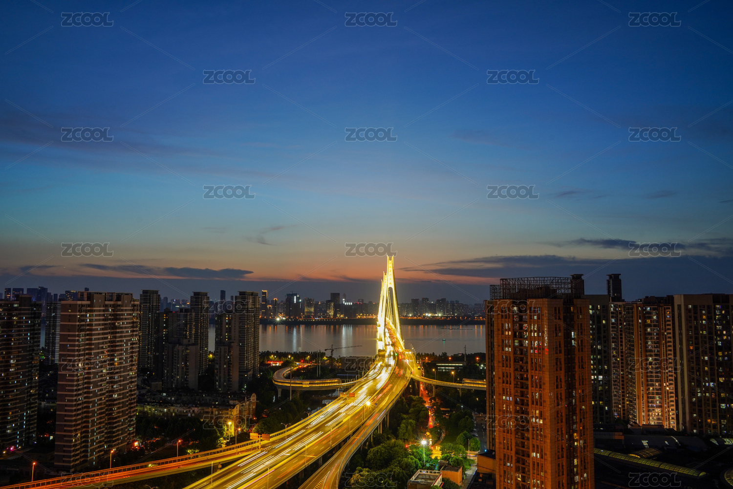 武汉鹦鹉洲大桥晚霞亮灯夜景