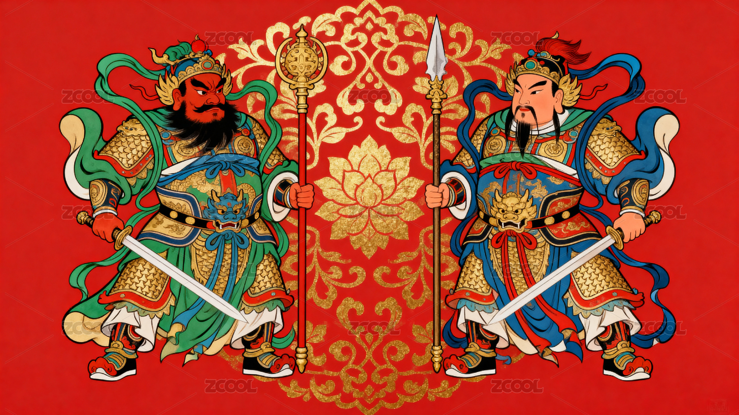 门神传统色民俗装饰场景