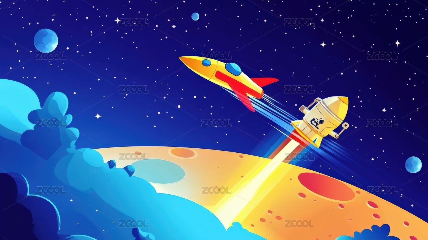 商务, 唯美, 插画, 梦幻, 设计, 蓝色,科技, 未来, 星星,飞船