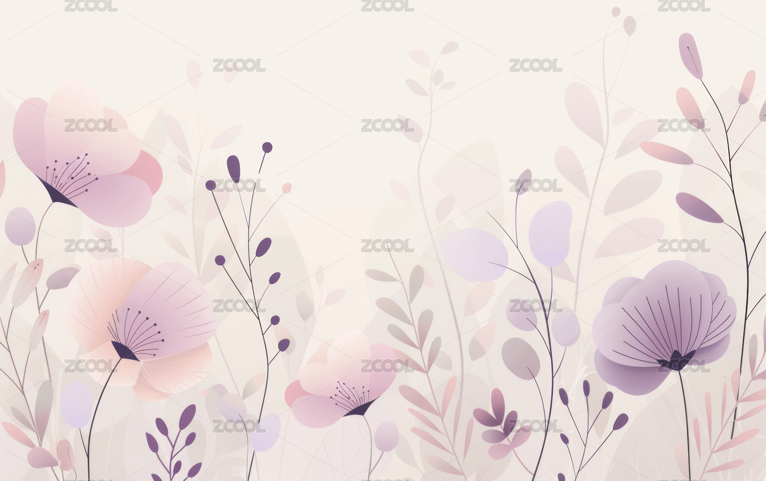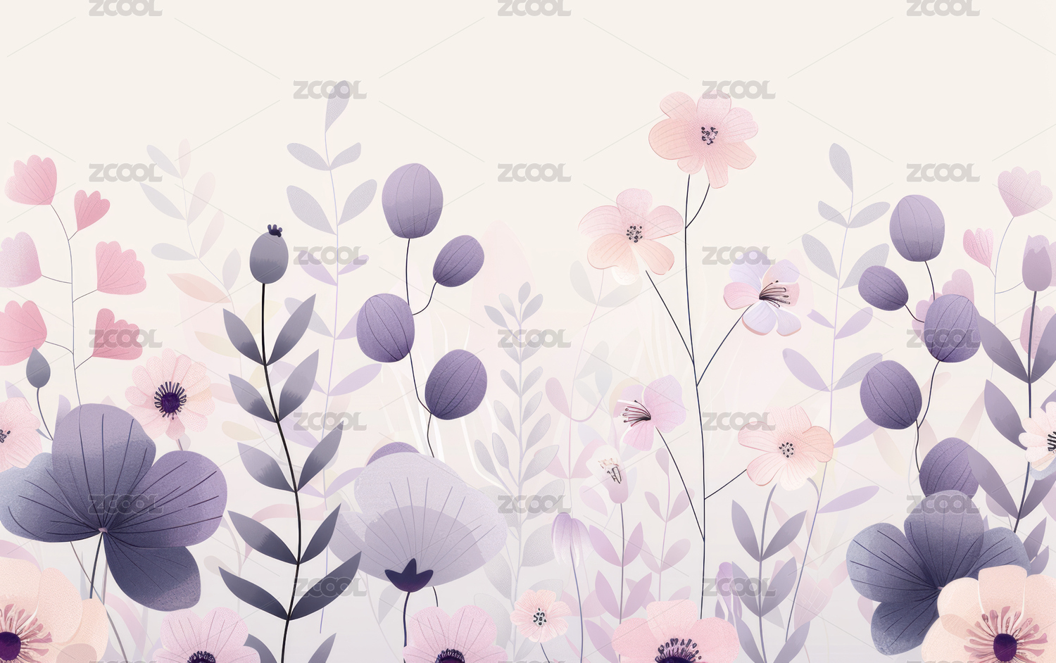 淡雅紫色花卉唯美插画