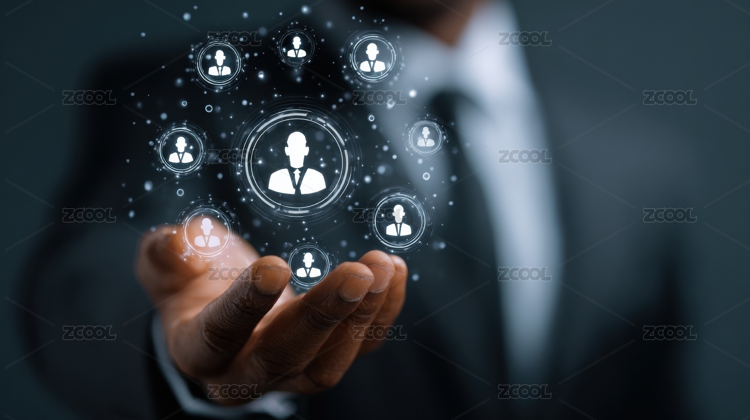 商务人士展示虚拟人脉网络