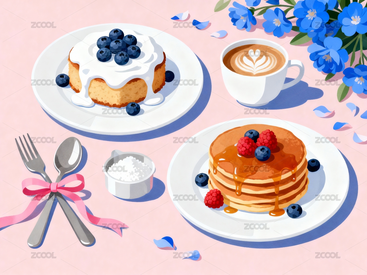 水彩,食物,插画,寿司,面条,蛋糕,火锅,中餐,柔和,艺术