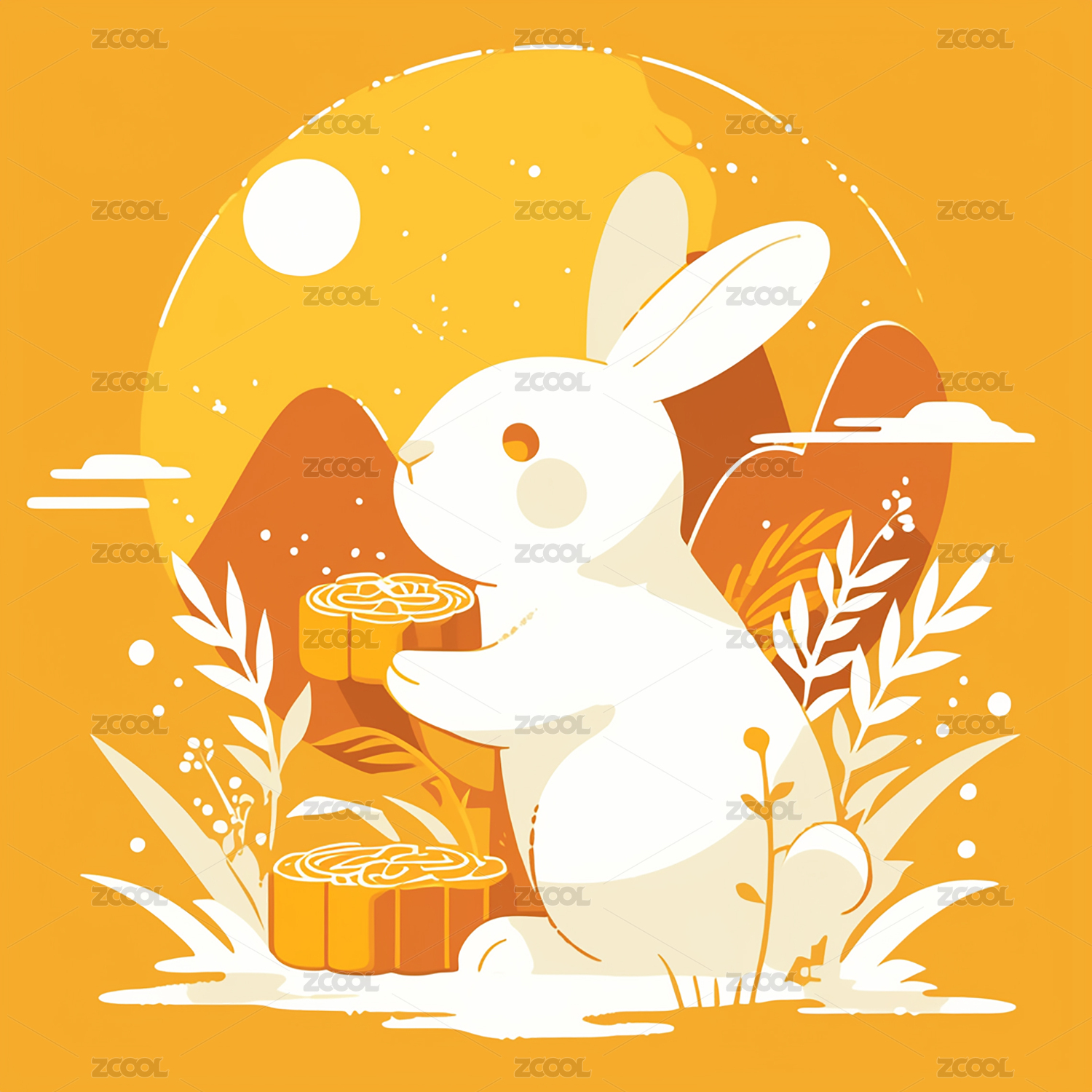 兔子与月饼插画