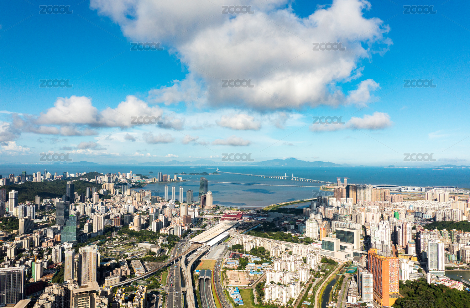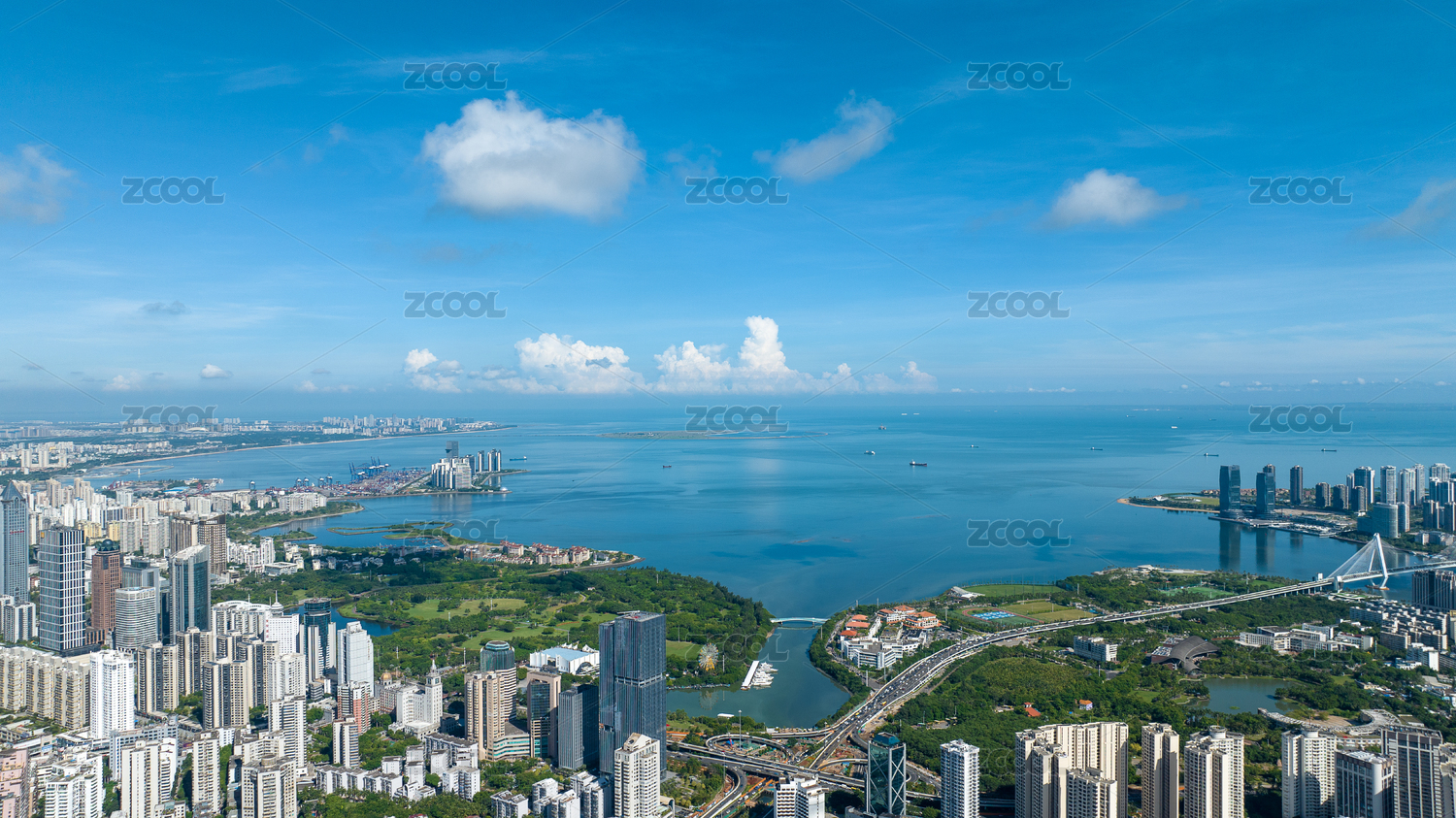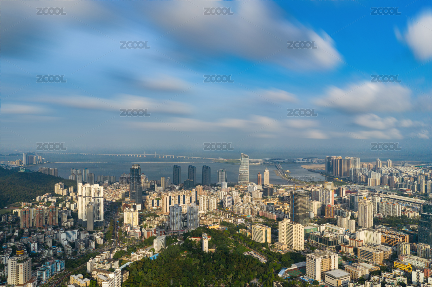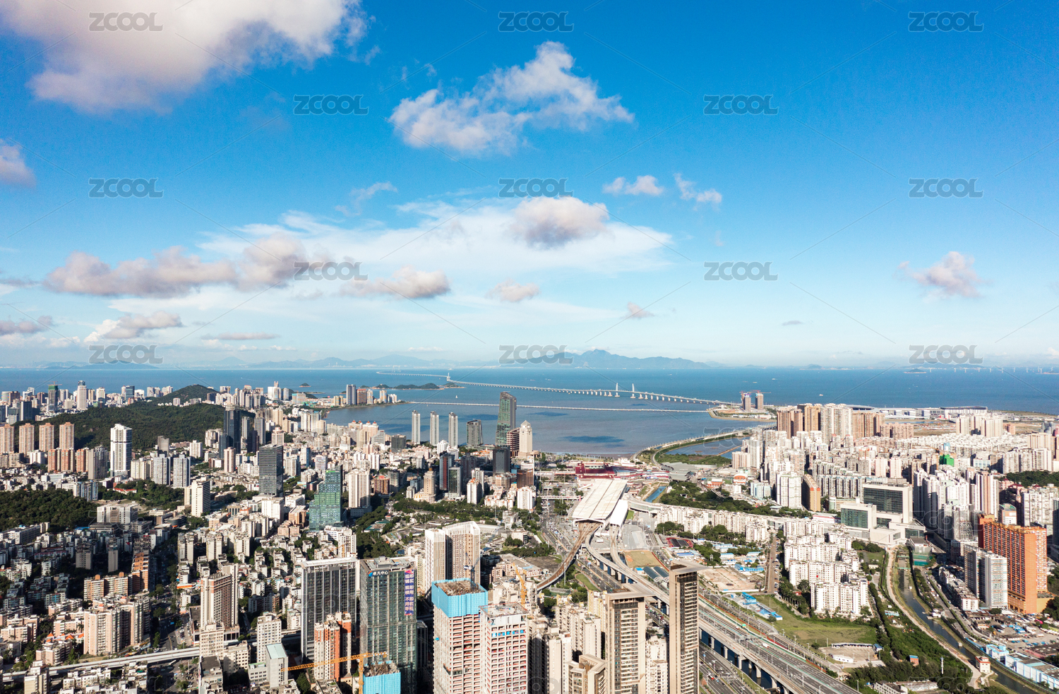 中国广东深圳南山区住宅楼盘和深圳湾大桥