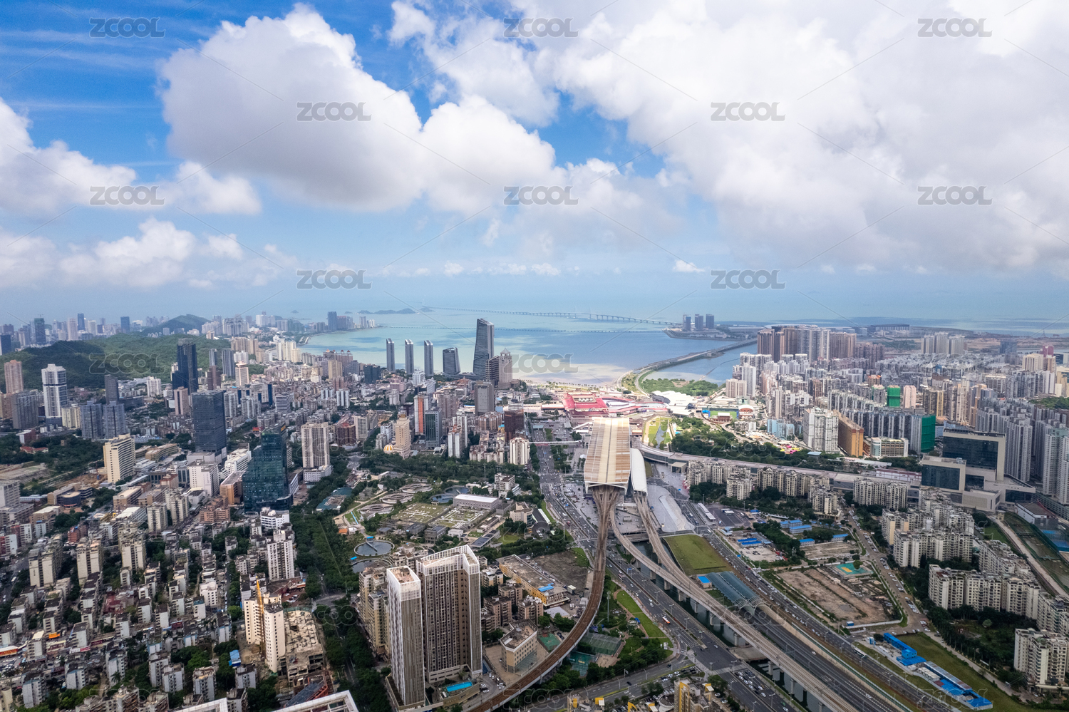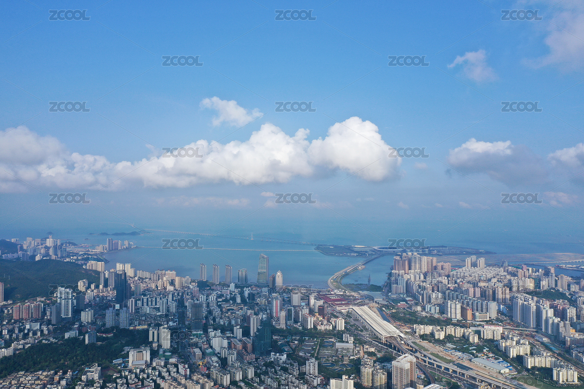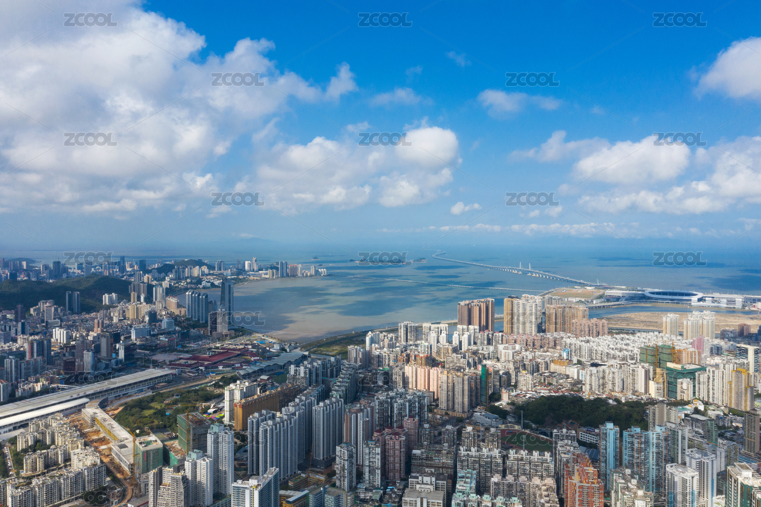 中国广东深圳南山区住宅楼盘和深圳湾大桥