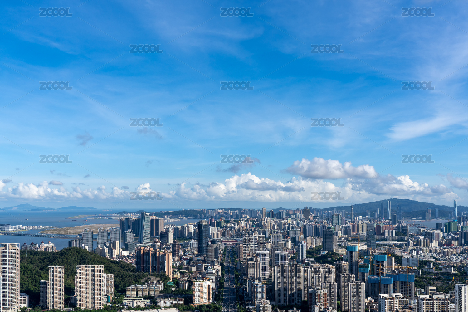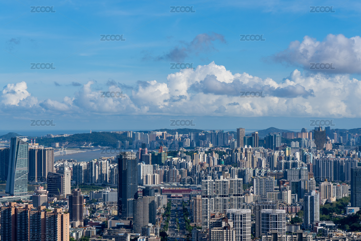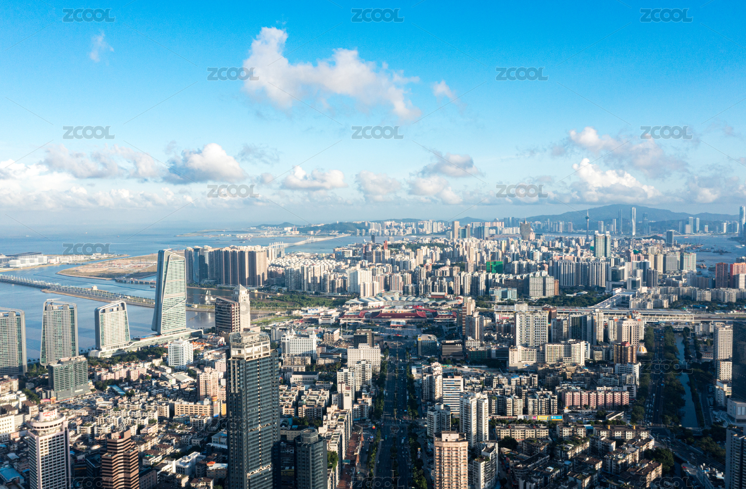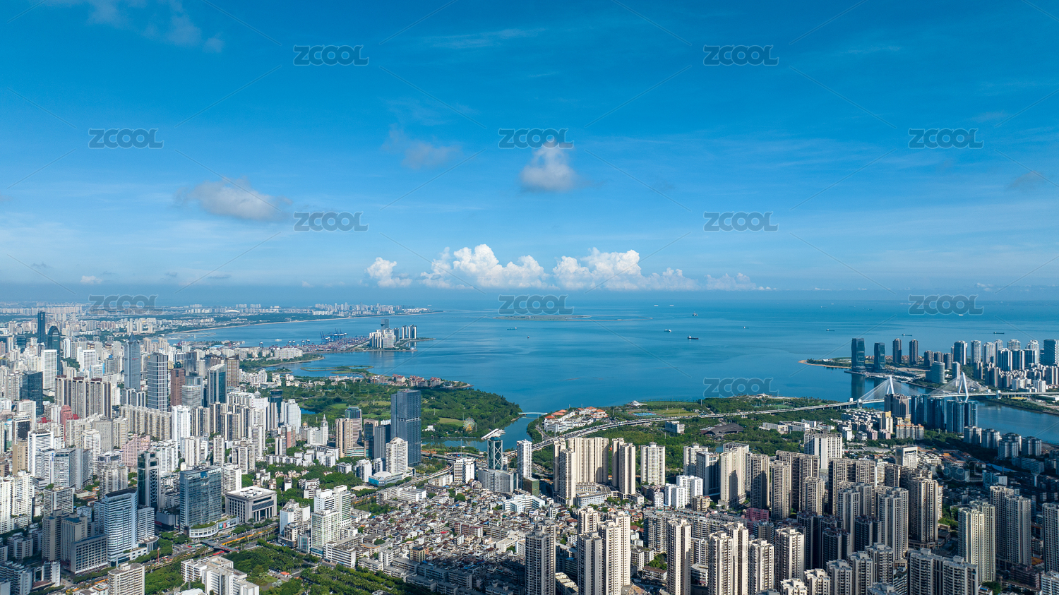 中国广东深圳南山区住宅楼盘和深圳湾大桥