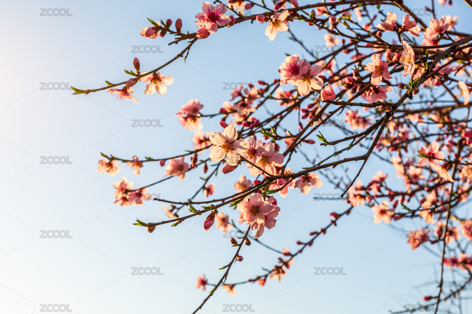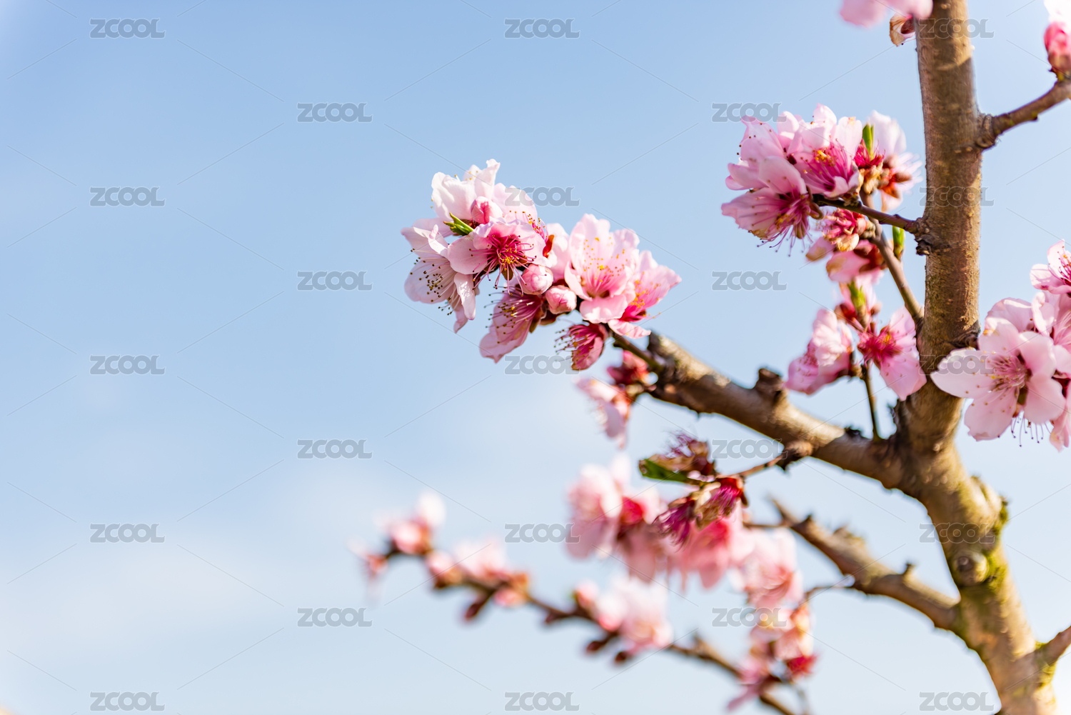 春天里蓝背景下盛开的梅花浓艳瑰丽雍容端庄