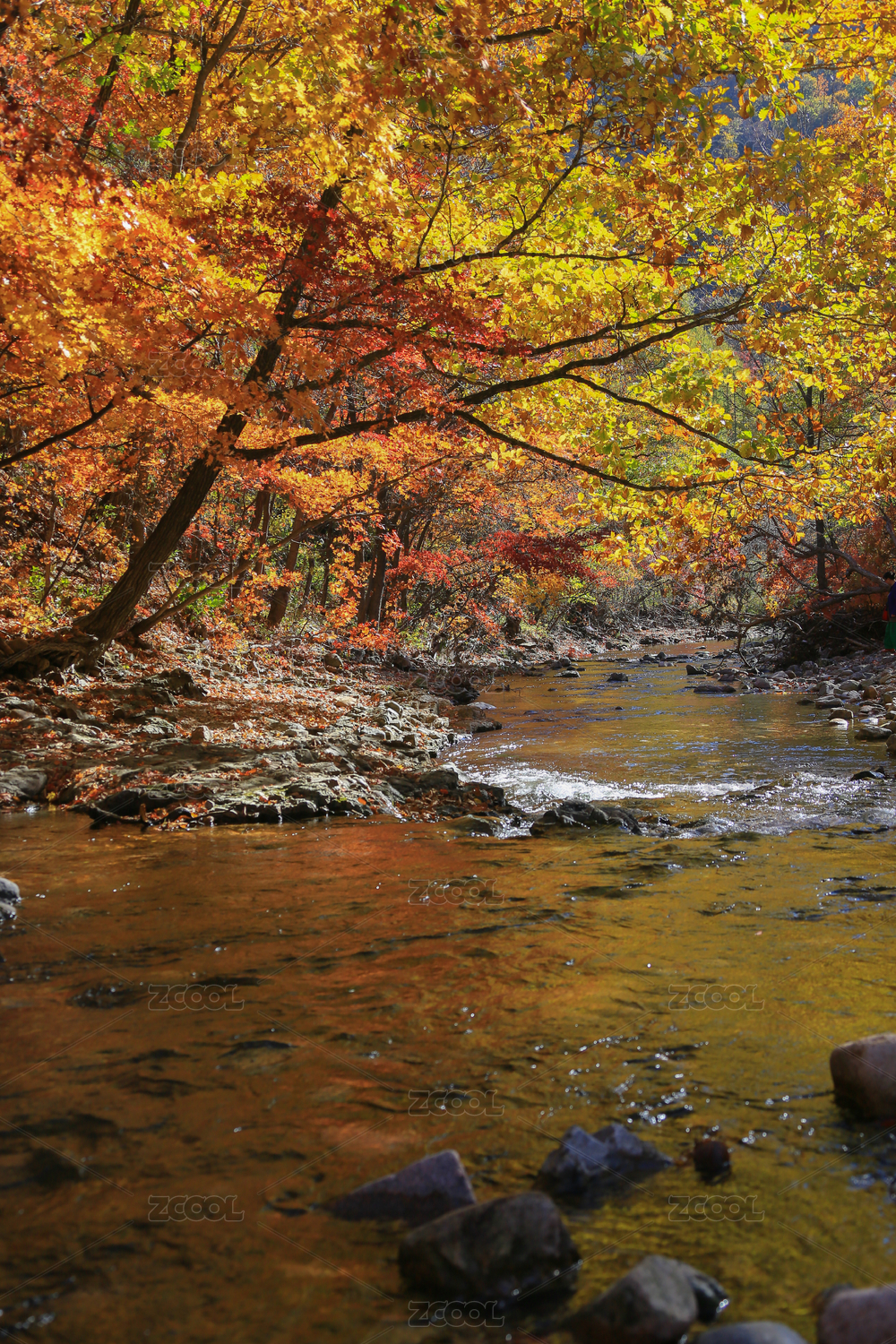 沈阳本溪老边沟 秋天枫树红叶溪流自然风光