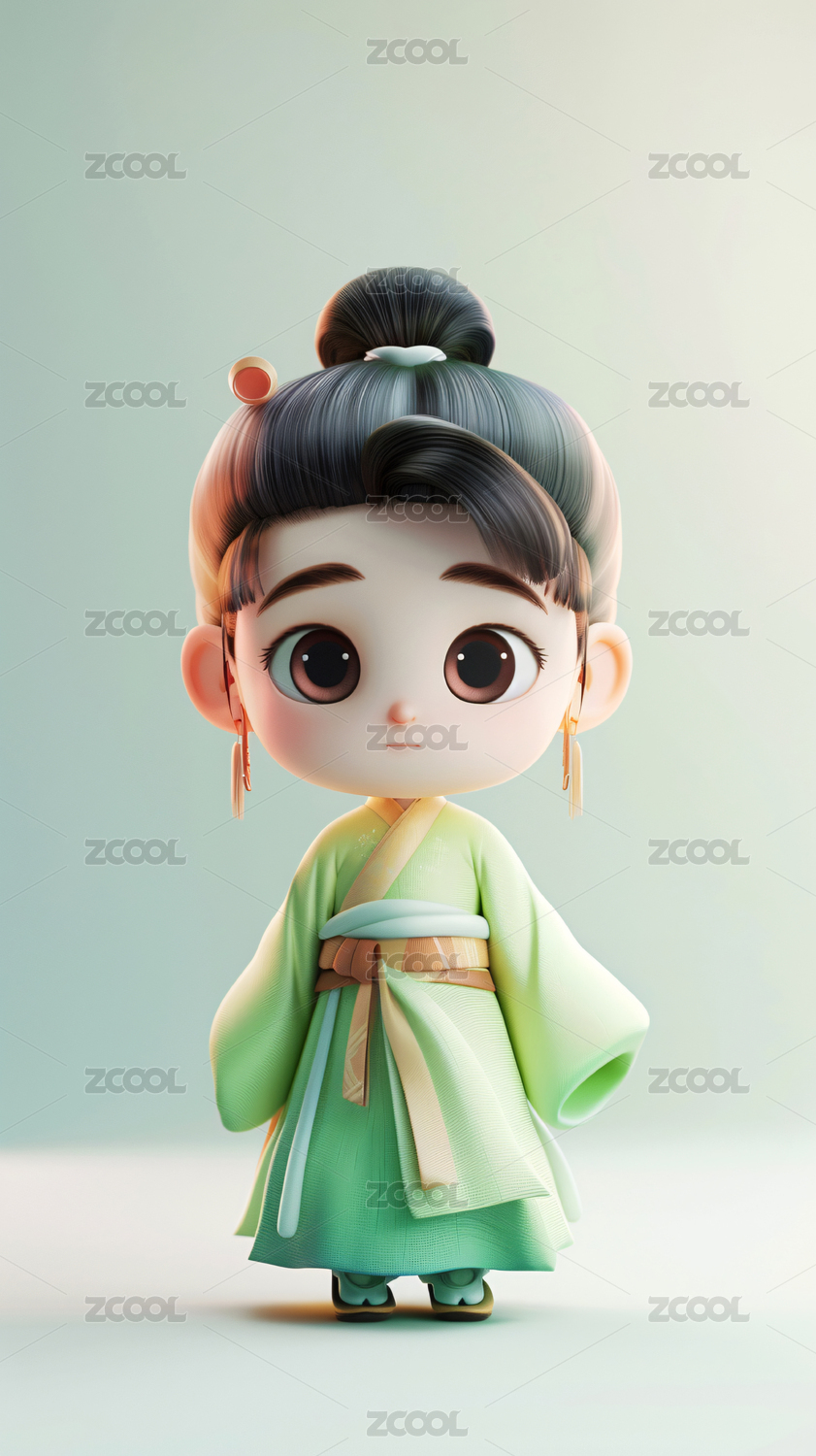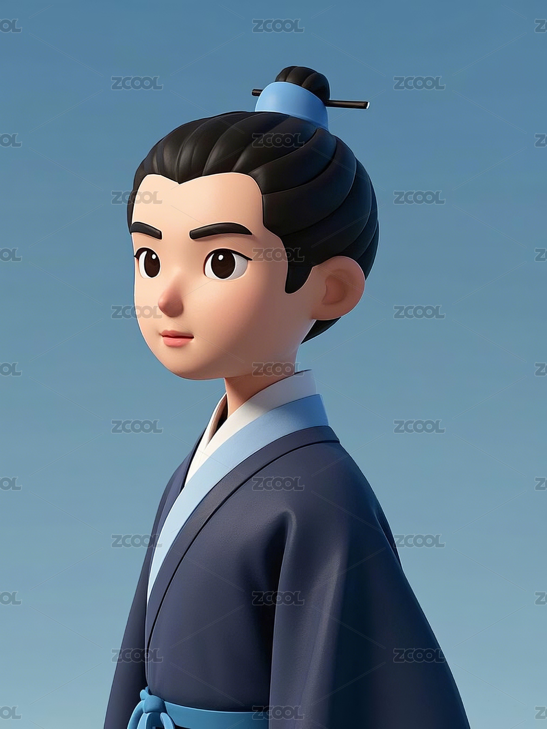 Q版3D委屈古风黑蓝道袍道士卡通人物插画