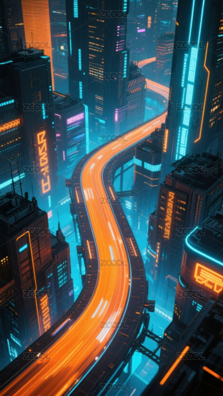 未来赛博朋克城市夜景