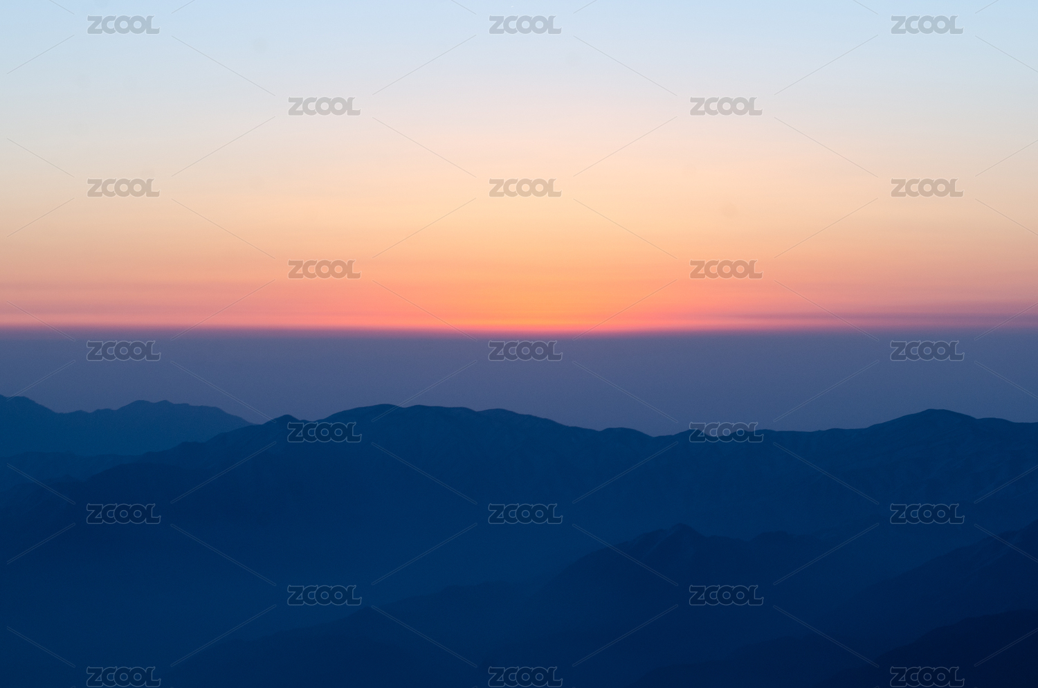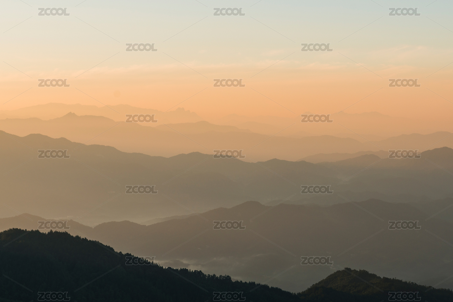 日出时群山对天的景色