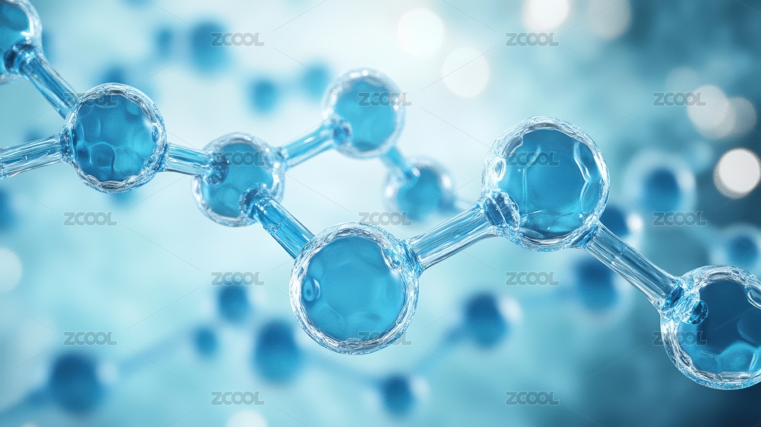 蓝色水分子亲肤化妆品精华分子3D